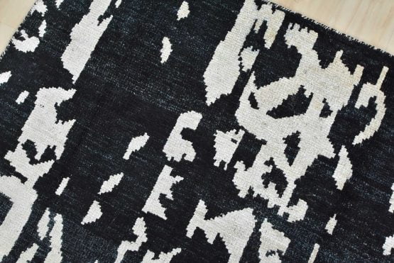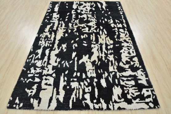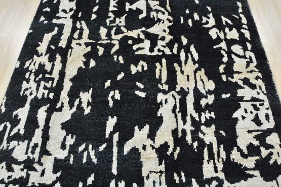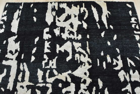 A contemporary abstract rug hand-knotted with a viscose pile on a cotton foundation. This area rug features an all-over abstract design. It is new and in excellent condition.
