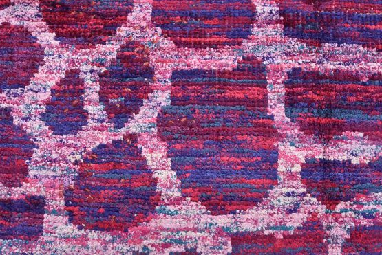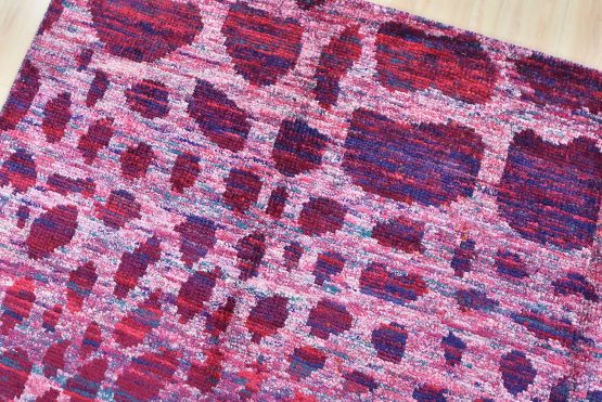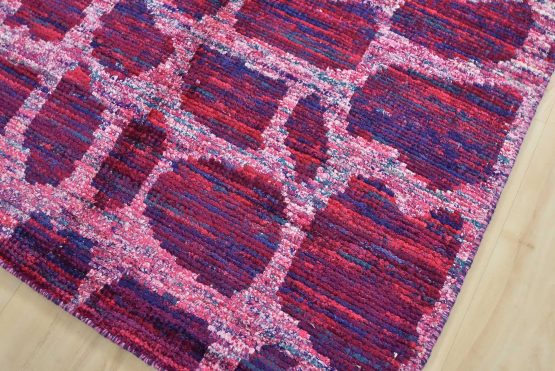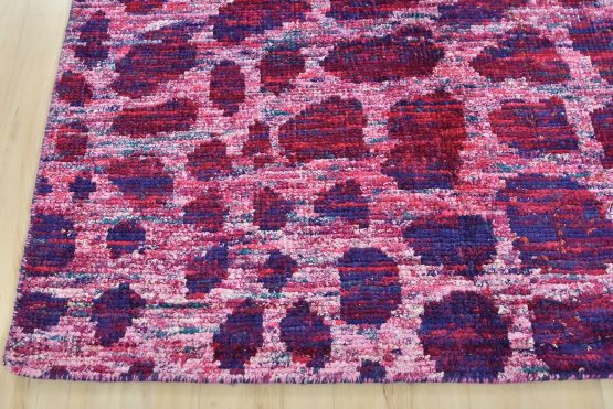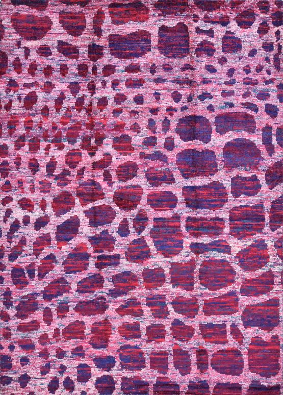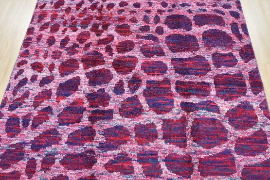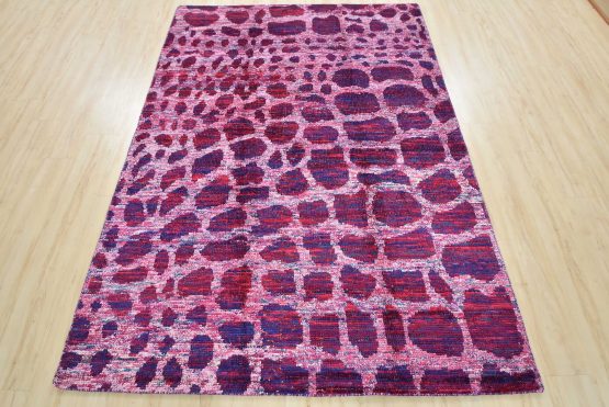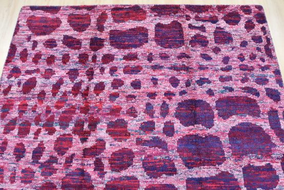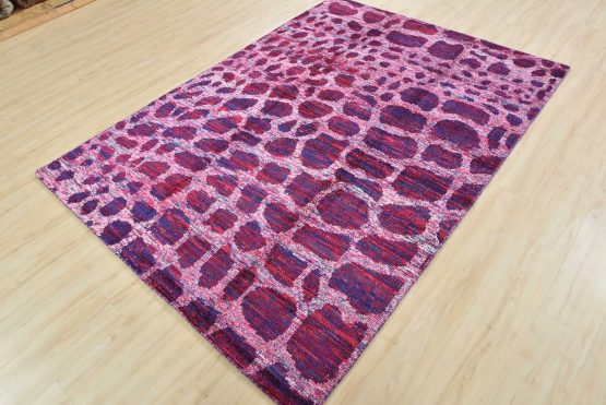 A contemporary abstract rug hand-knotted with a viscose pile on a cotton foundation. This area rug features an all-over abstract design. It is new and in excellent condition.