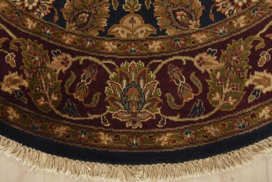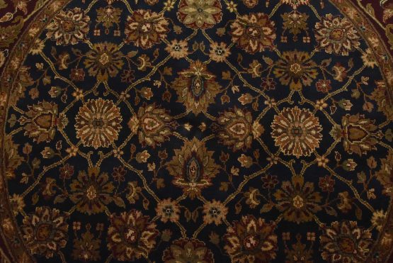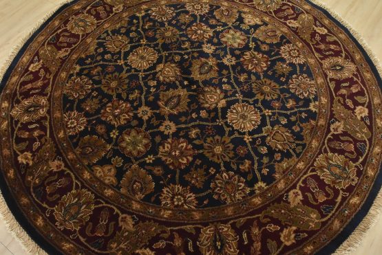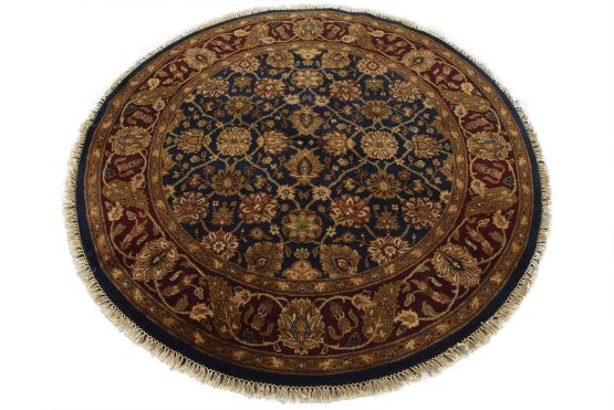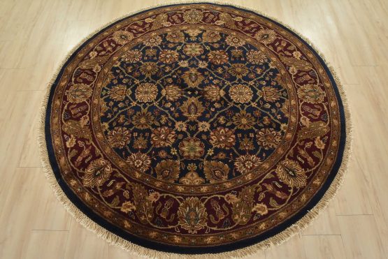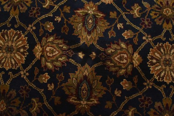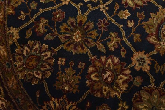 A traditional Agra rug hand-knotted with an all-wool pile on a cotton foundation. This oriental rug features an all-over floral design set against a blue background. It is new and in excellent condition.