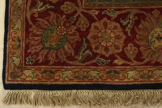 This fine traditional Agra rug is hand-knotted with an all-wool pile on a cotton foundation. This rug is new and in excellent condition.