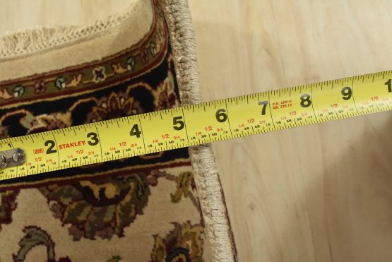 A traditional Agra runner hand-knotted with an all-wool pile on a cotton foundation. This finely woven oriental rug features an all-over floral design set against a beige background. It is new and in excellent condition.