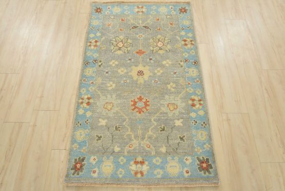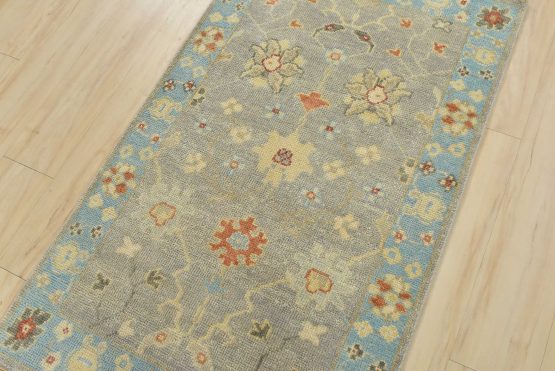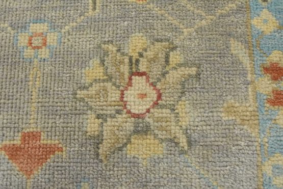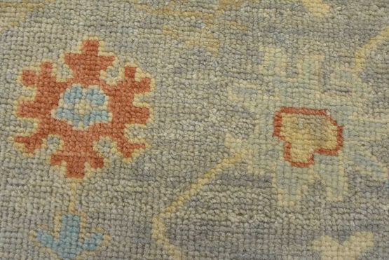 A modern traditional Anatolia rug hand-knotted with an all-wool pile on a cotton foundation. This oriental rug features a subtle floral design set against a gray background. It is new and in excellent condition.