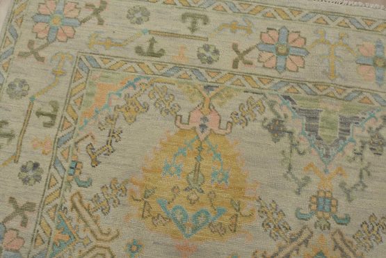 Using designs and patterns of 19th-century Turkish weavers, these beautiful rugs recreate the classic style of the Anatolian Usak (Oushak) design. Hand-woven in India by artisan weavers using soft, lustrous wool, these rugs would coordinate with any traditional, modern, or contemporary home decor.
