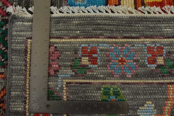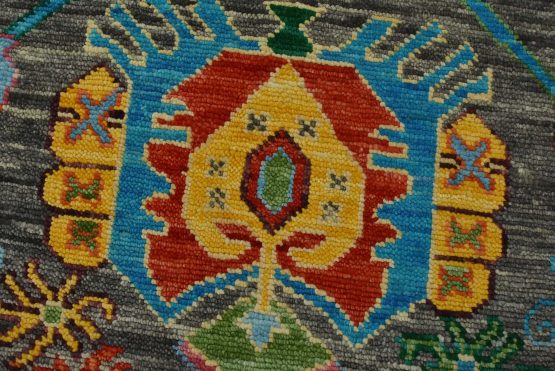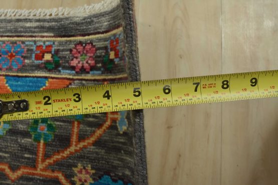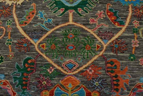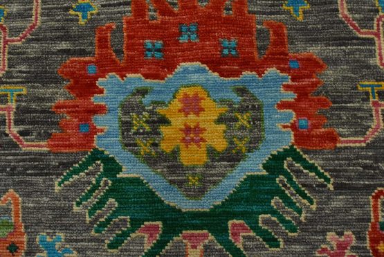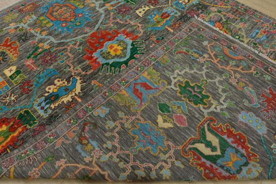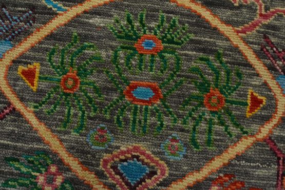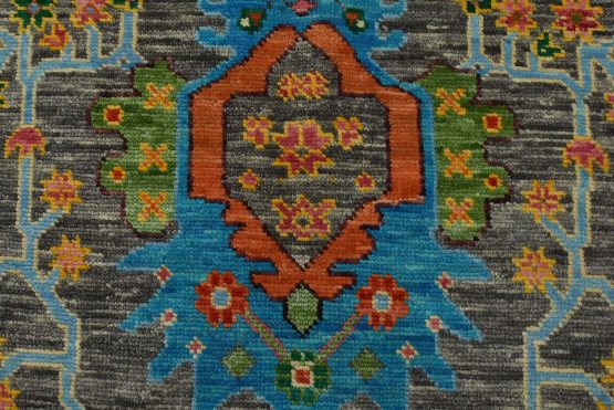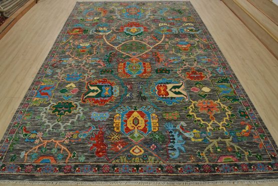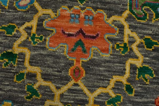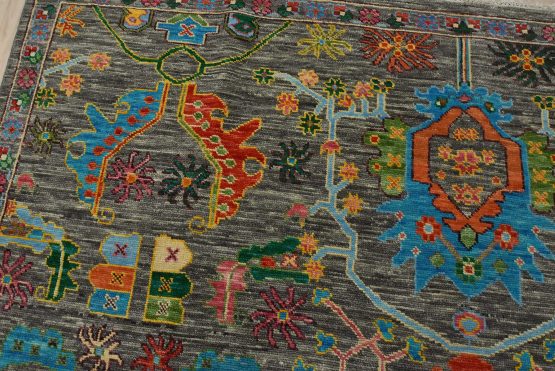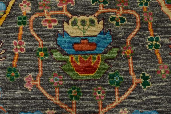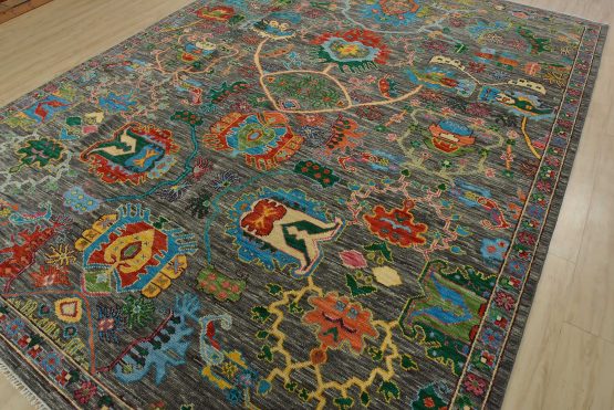 A modern traditional Anatolia rug hand-knotted with an all-wool pile on a cotton foundation. This oriental rug features all-over botanical motifs set against a gray background. It is new and in excellent condition.