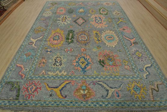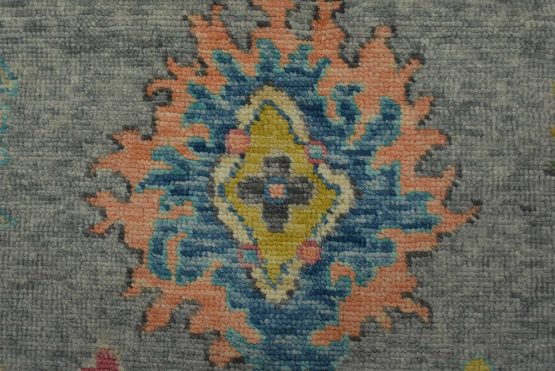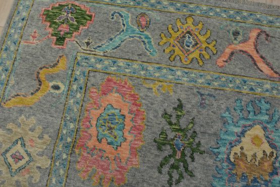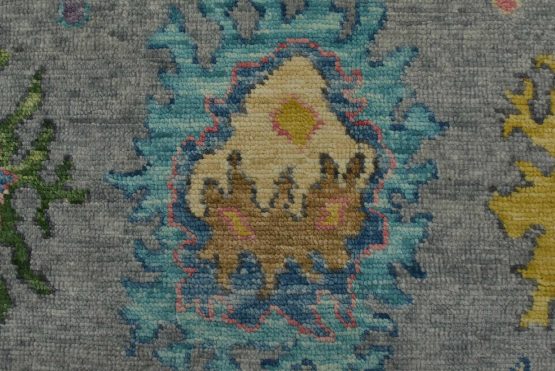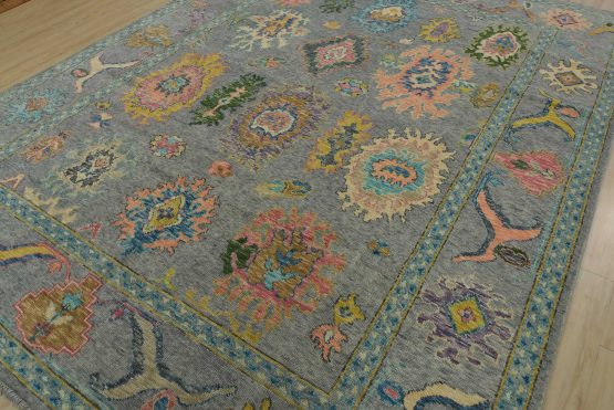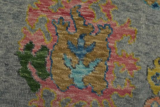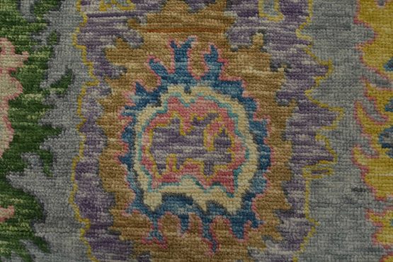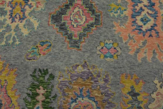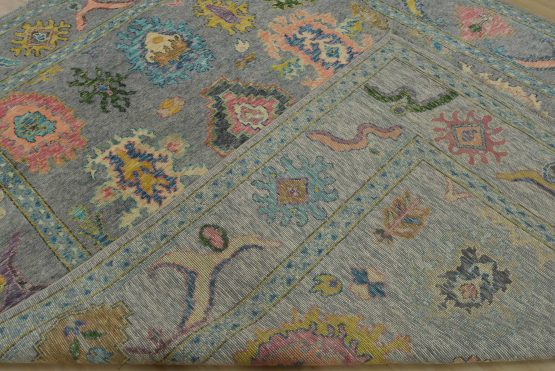 A modern traditional Anatolia rug hand-knotted with an all-wool pile on a cotton foundation. This oriental rug features an all-over design of botanical motifs set against a gray background. It is new and in excellent condition.