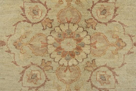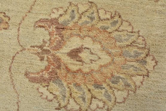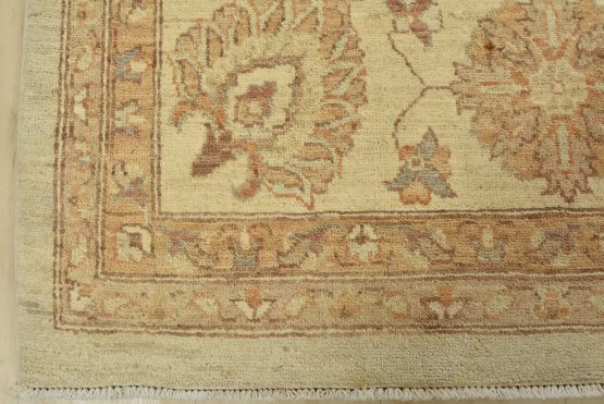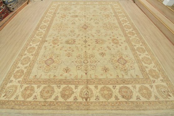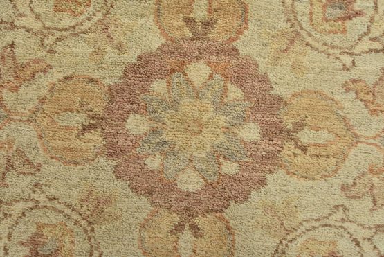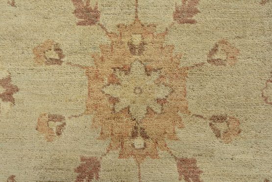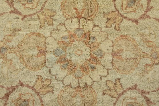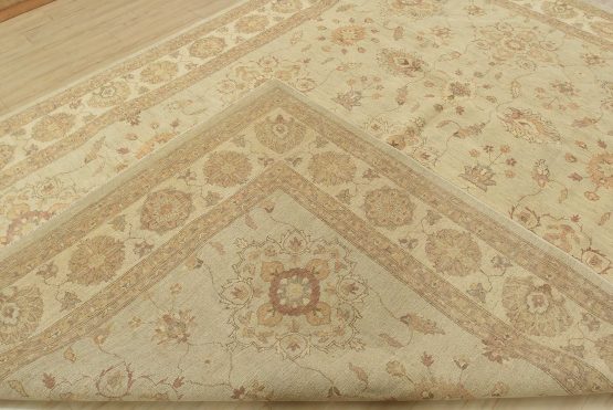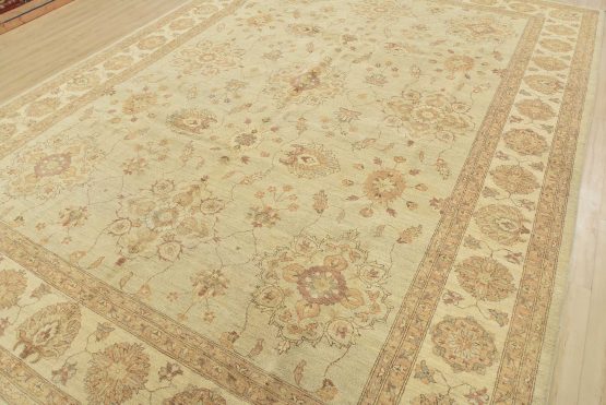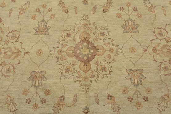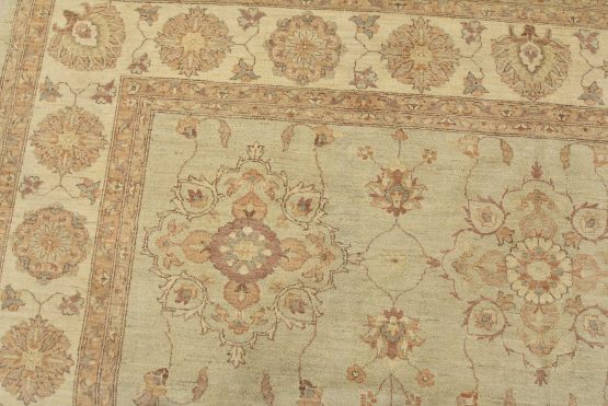 A traditional Ziegler rug hand-knotted with an all-wool pile on a cotton foundation. This oriental rug features muted colors with an all-over floral design set against a light blue background. It is new and in excellent condition.