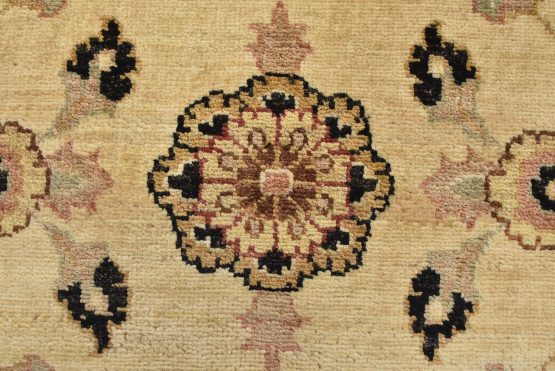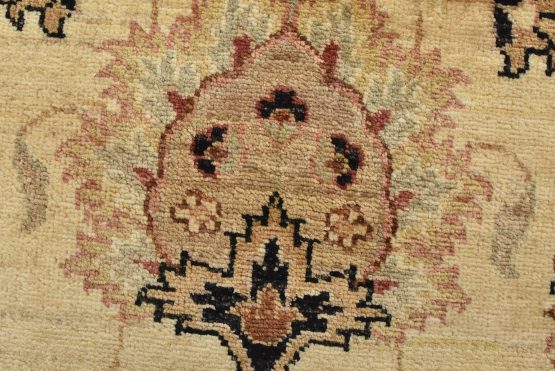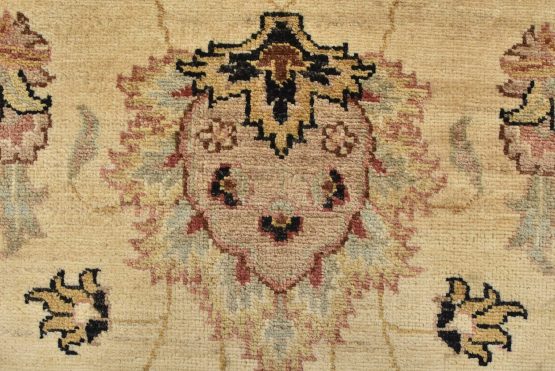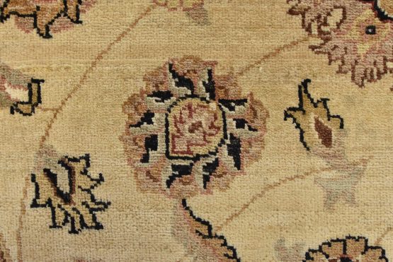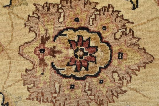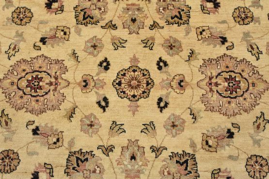 A traditional Ziegler rug hand-knotted with an all-wool pile on a cotton foundation. This oriental rug features an all-over floral design set against a beige background. It is new and in excellent condition.