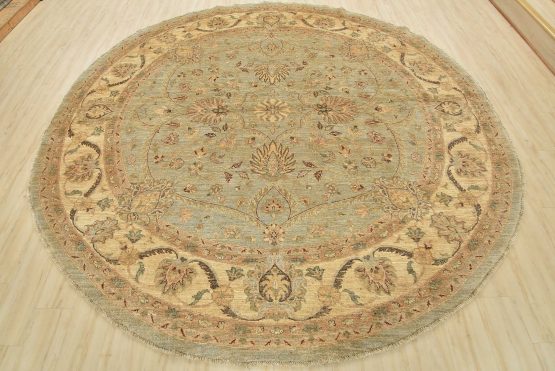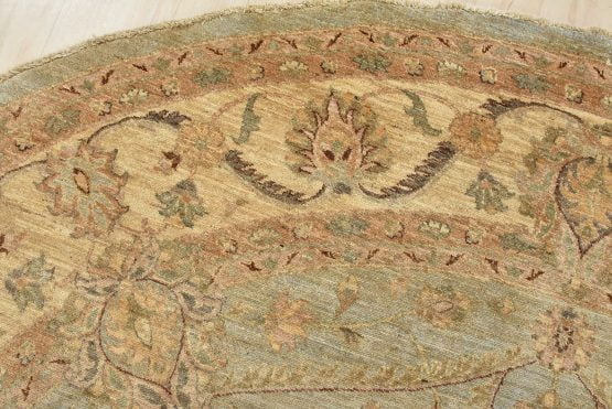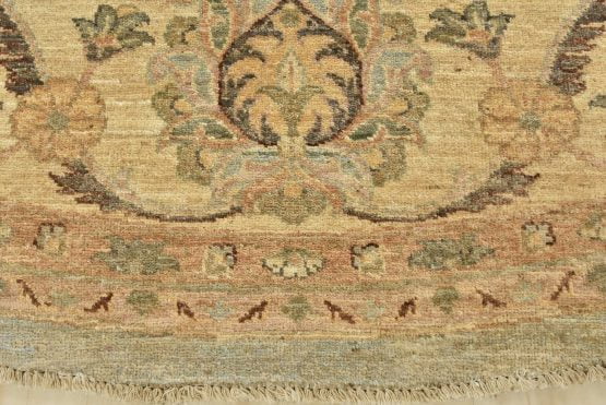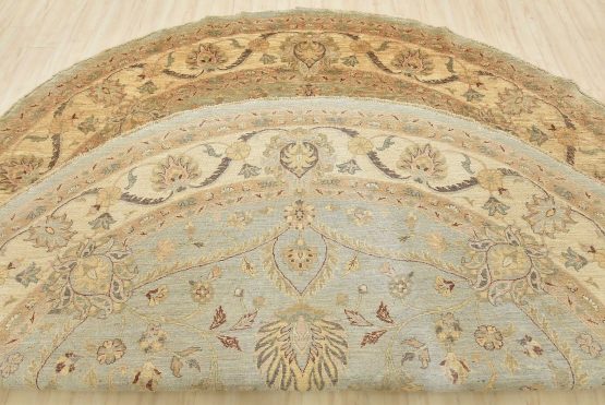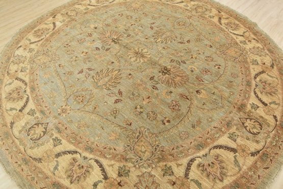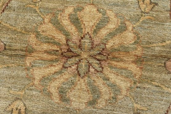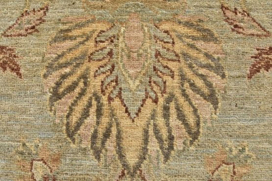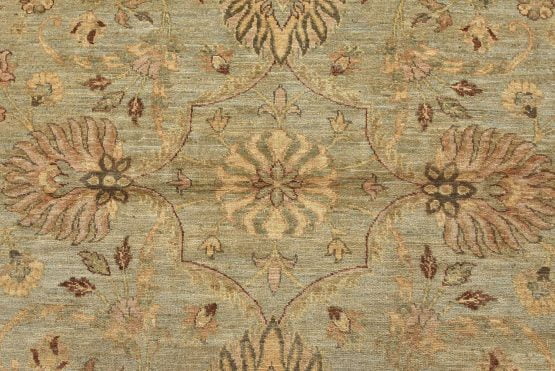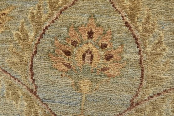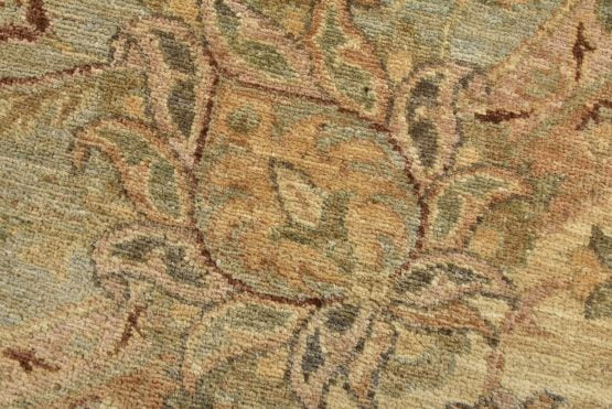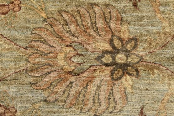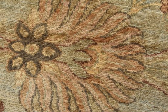 A traditional Ziegler rug hand-knotted with an all-wool pile on a cotton foundation. This oriental rug features a muted all-over floral design set against a light blue background. It is new and in excellent condition.