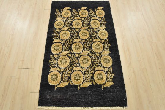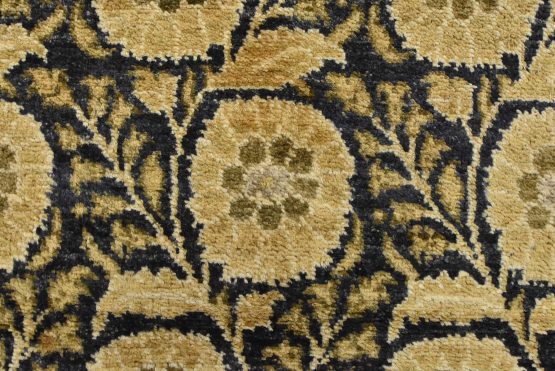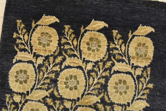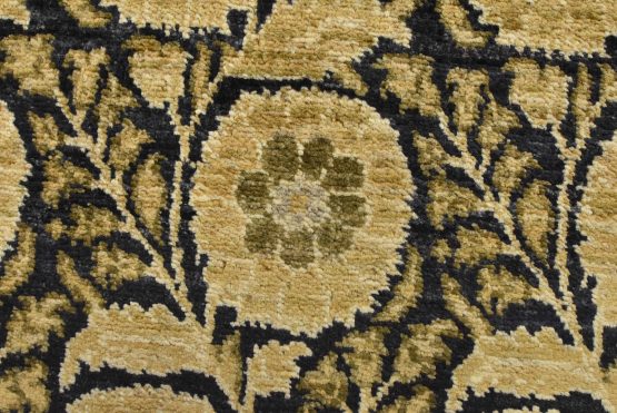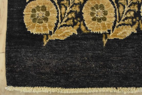 A traditional Ziegler rug hand-knotted with an all-wool pile on a cotton foundation. This oriental rug features an all-over floral pattern set against a black background. It is new and in excellent condition.