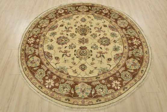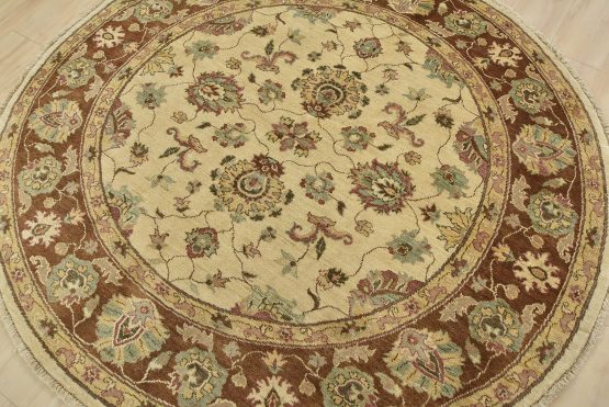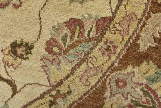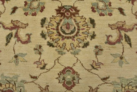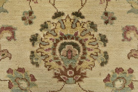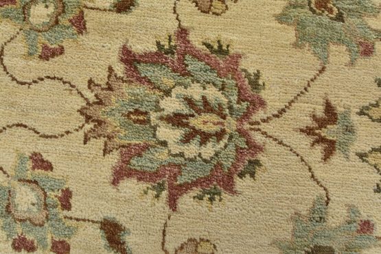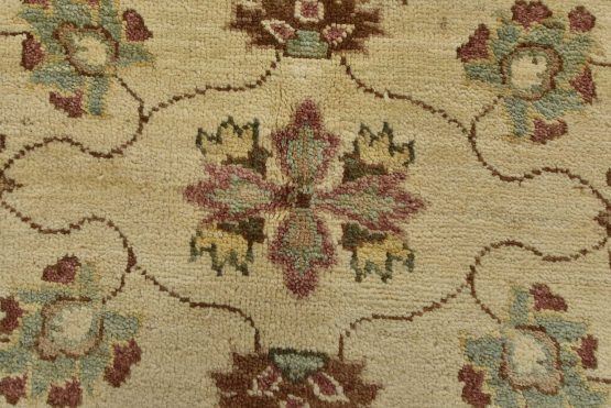 A traditional Ziegler rug hand-knotted with an all-wool pile on a cotton foundation. This oriental rug features an all-over floral design set against a beige background. It is new and in excellent condition.