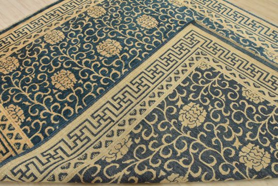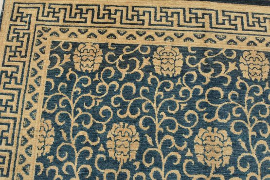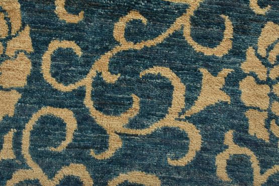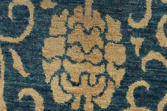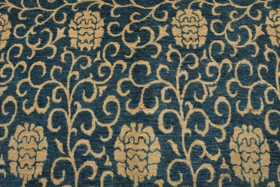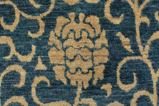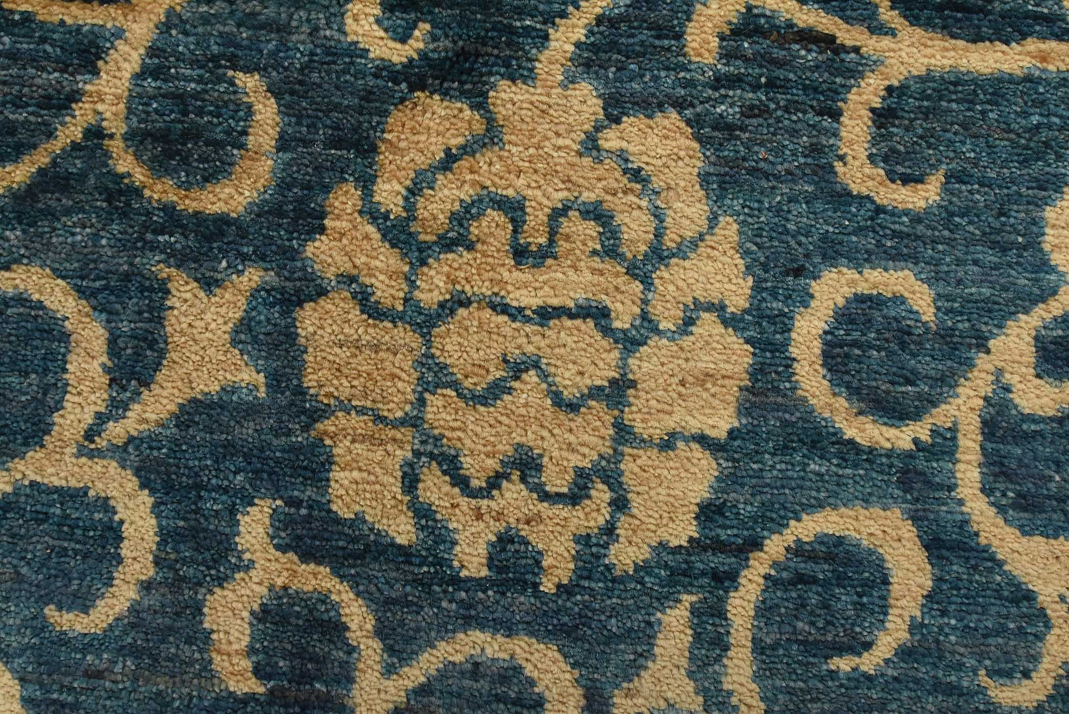 A traditional Ziegler rug hand-knotted with an all-wool pile on a cotton foundation. This oriental rug features an all-over botanical design set against a blue background. It is new and in excellent condition.