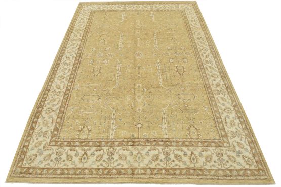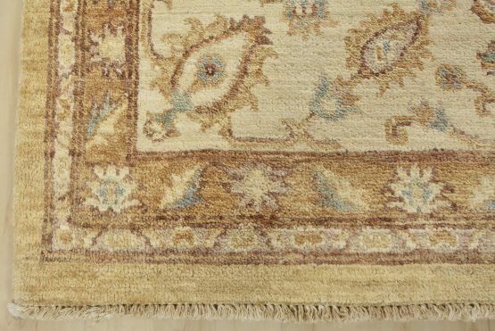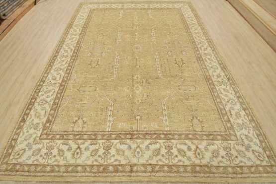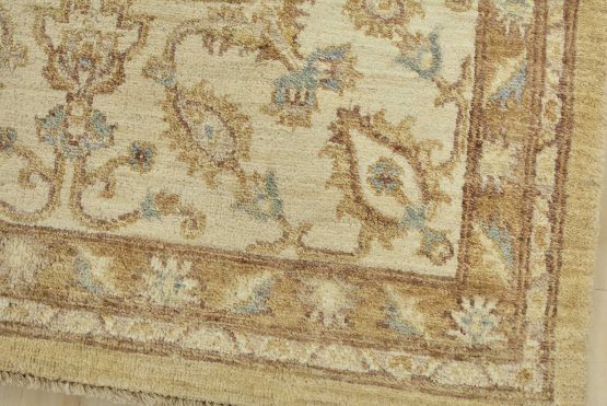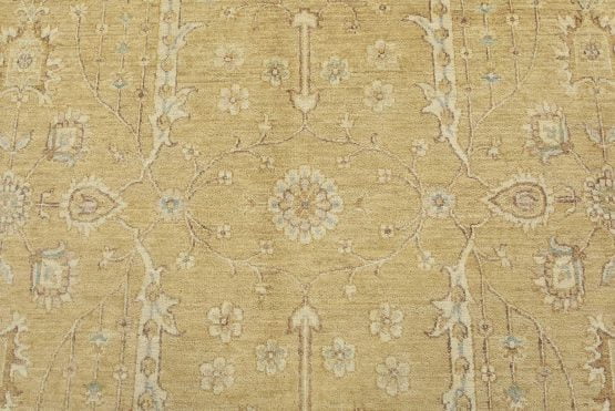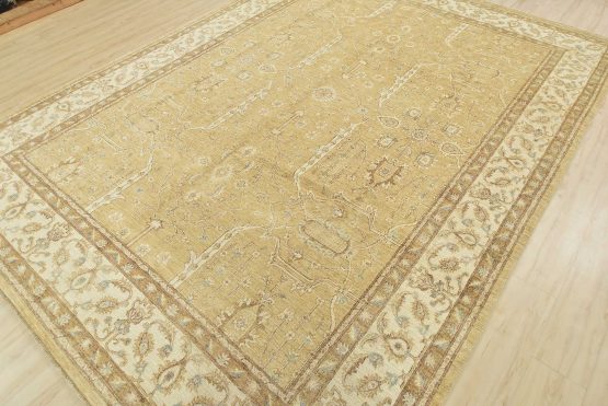 A modern traditional Ziegler rug hand-knotted with an all-wool pile on a cotton foundation. This oriental rug features a subtle all-over botanical design set against a beige background. It is new and in excellent condition.