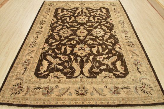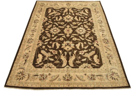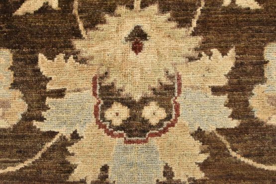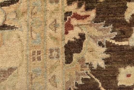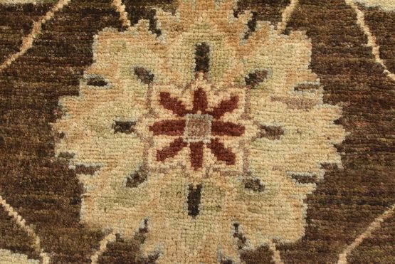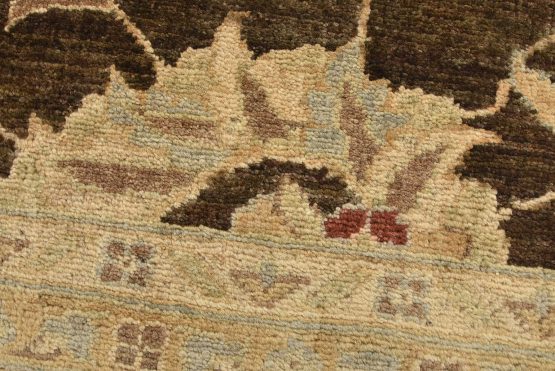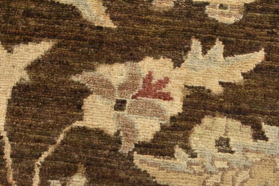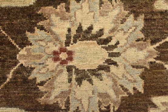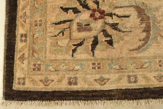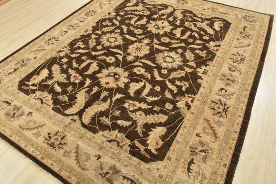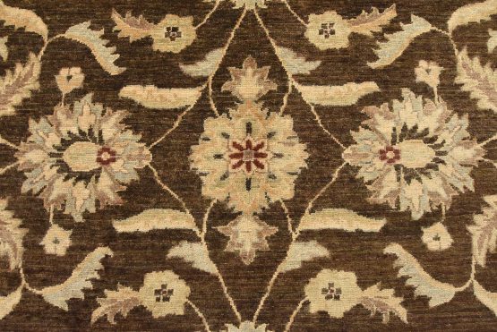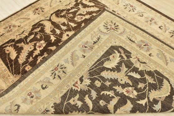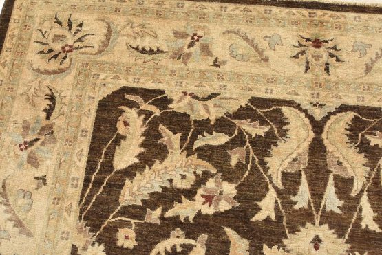 A traditional Ziegler rug hand-knotted with an all-wool pile on a cotton foundation. This oriental rug features an all-over floral design set against a brown background. It is new and in excellent condition.