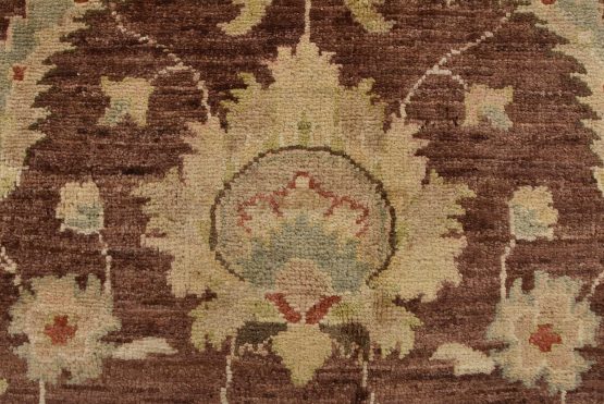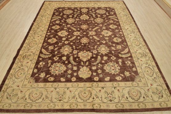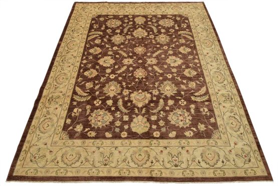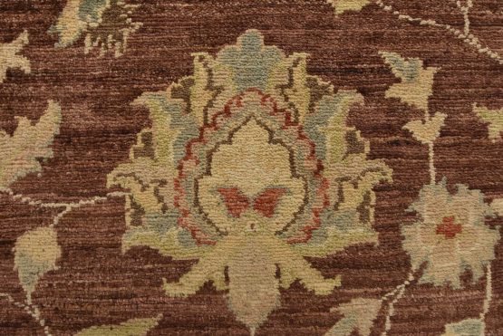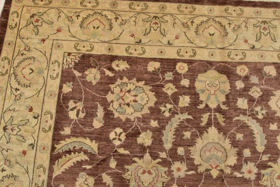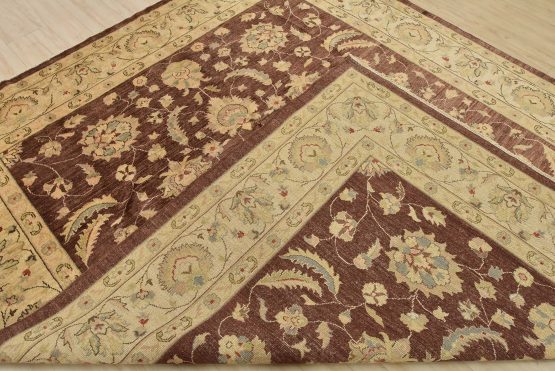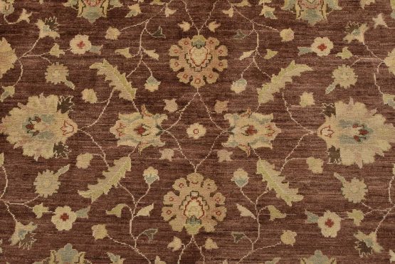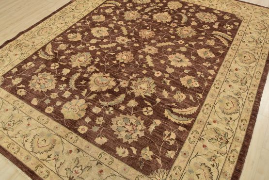 A traditional Ziegler rug hand-knotted with an all-wool pile on a cotton foundation. This oriental rug features an all-over floral design set against a brown background. It is new and in excellent condition.