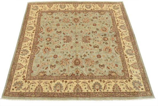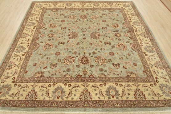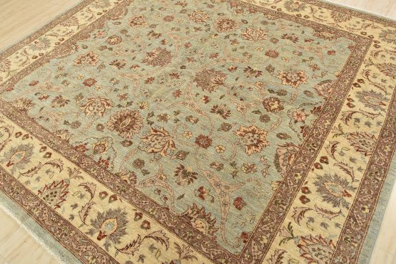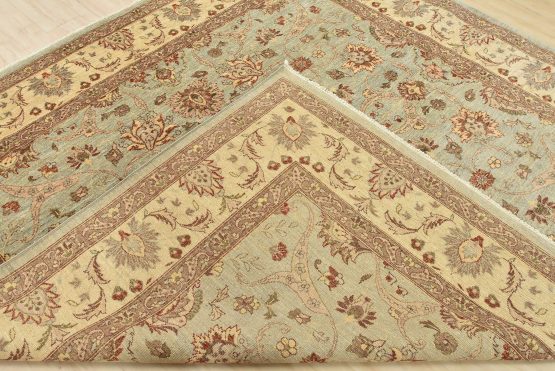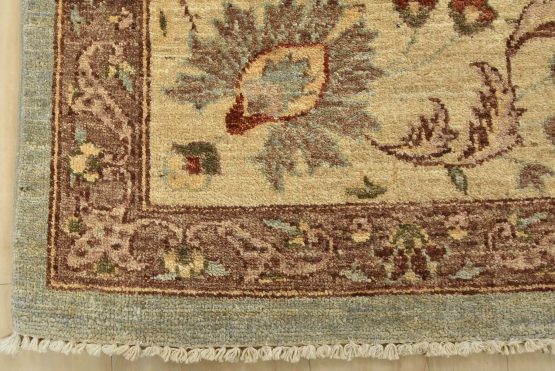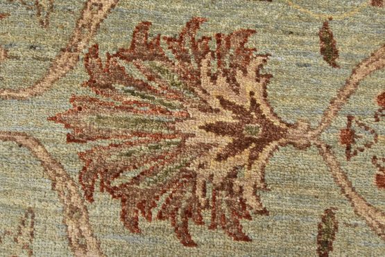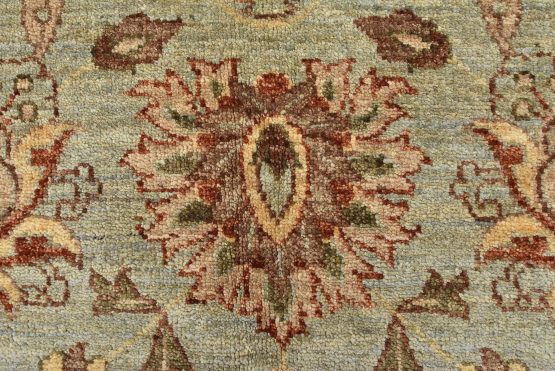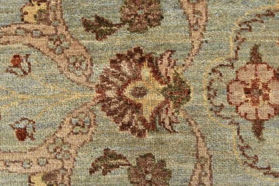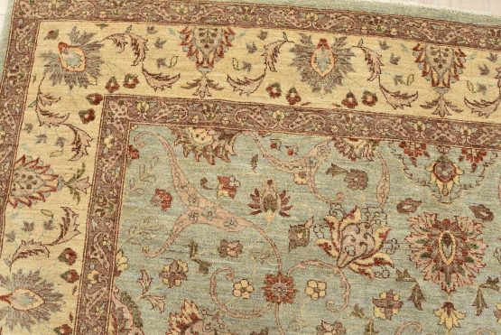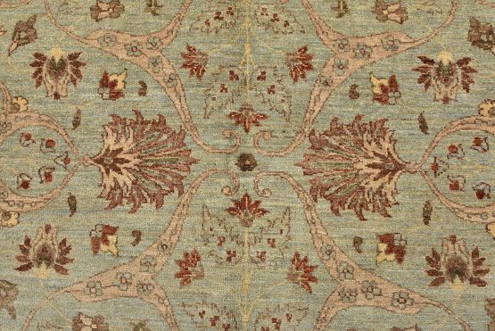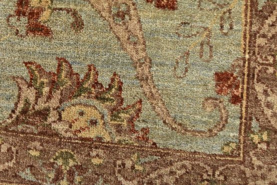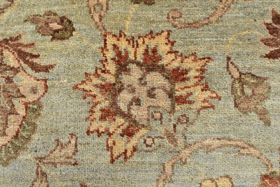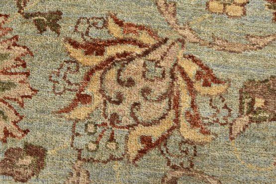 A traditional Ziegler rug hand-knotted with an all-wool pile on a cotton foundation. This oriental rug features an all-over floral design set against a light blue background. It is new and in excellent condition.