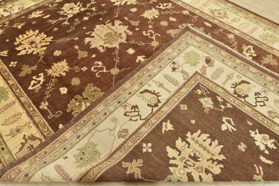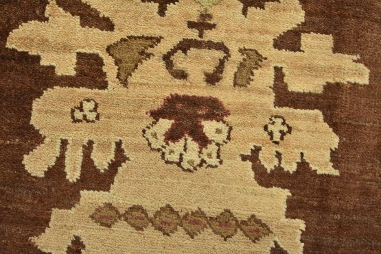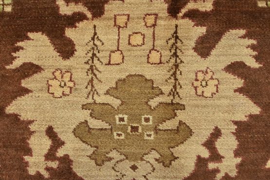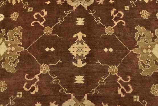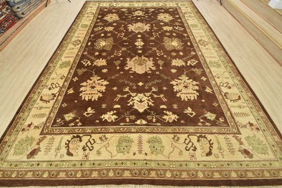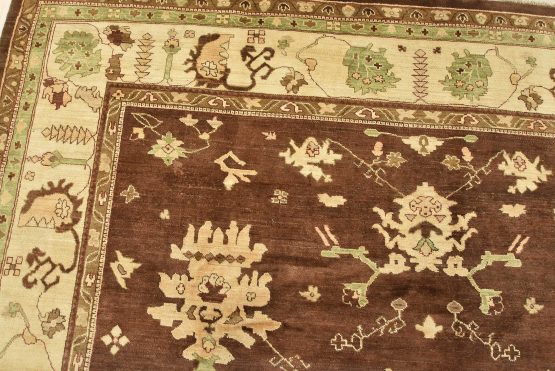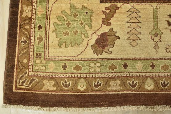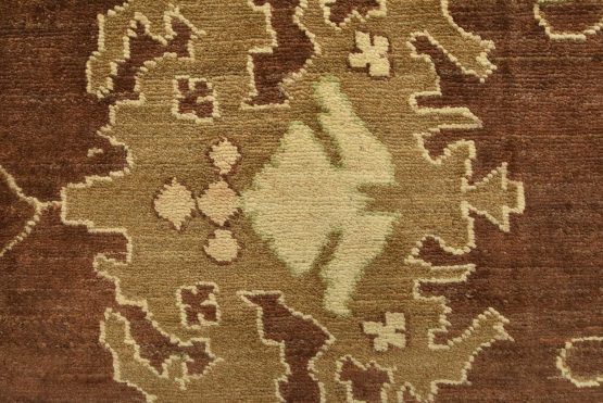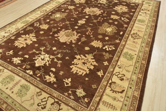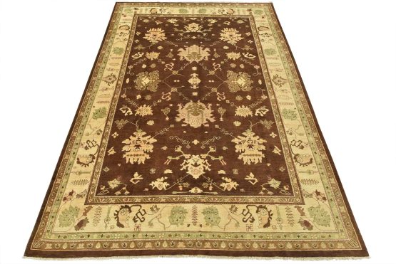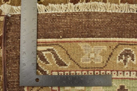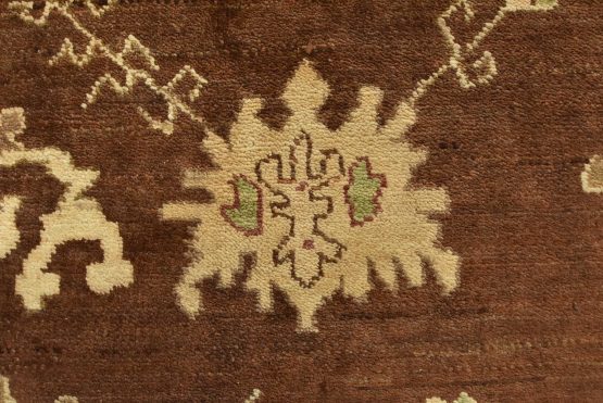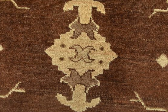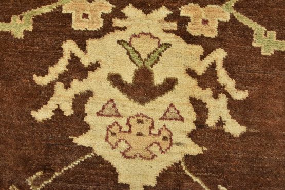 A traditional Ziegler rug hand-knotted with an all-wool pile on a cotton foundation. This oriental rug features an all-over botanical design set against a brown background. It is new and in excellent condition.