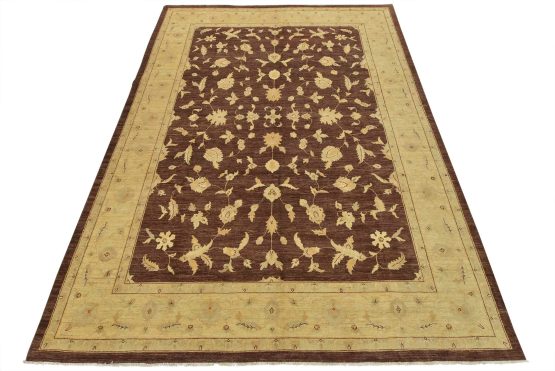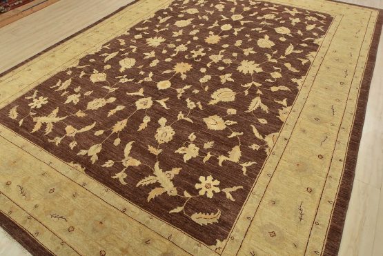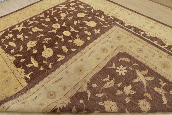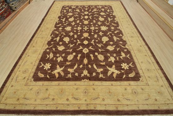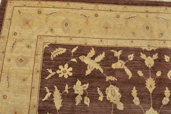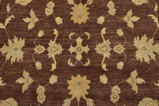A traditional Ziegler rug hand-knotted with an all-wool pile on a cotton foundation. This oriental rug features an all-over floral design set against a brown background. It is new and in excellent condition.