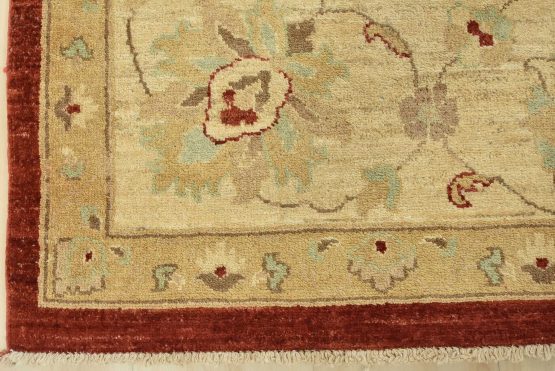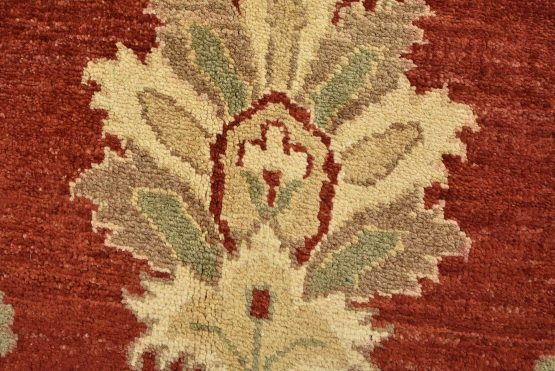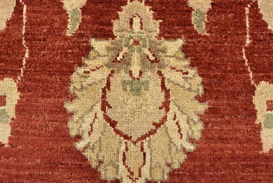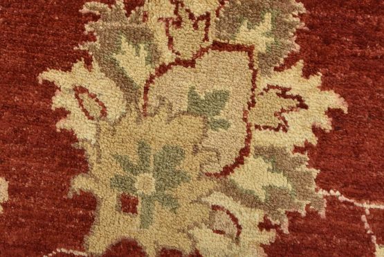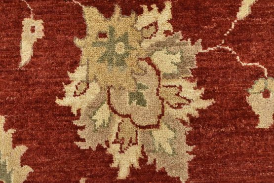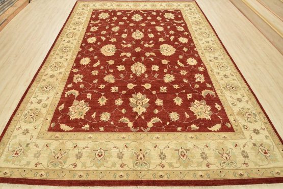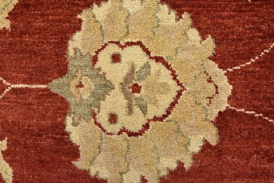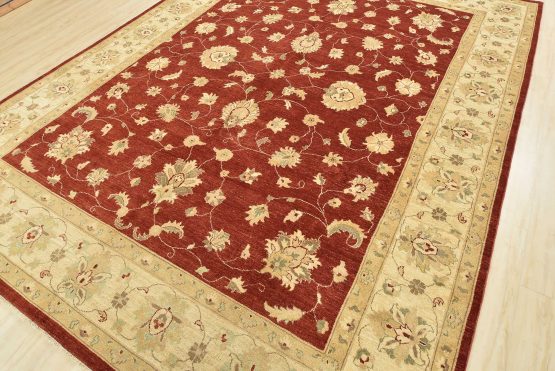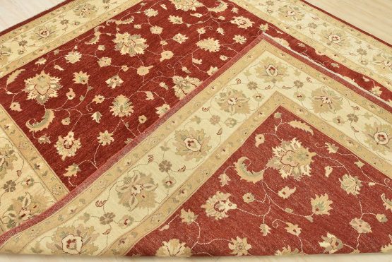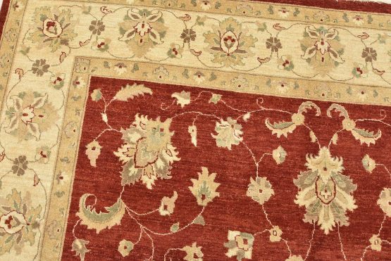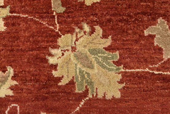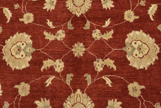A traditional Ziegler rug hand-knotted with an all-wool pile on a cotton foundation. This oriental rug features an all-over floral design set against a red background. It is new and in excellent condition.