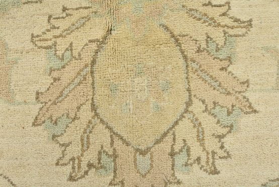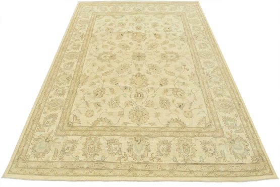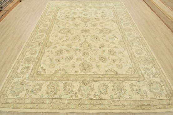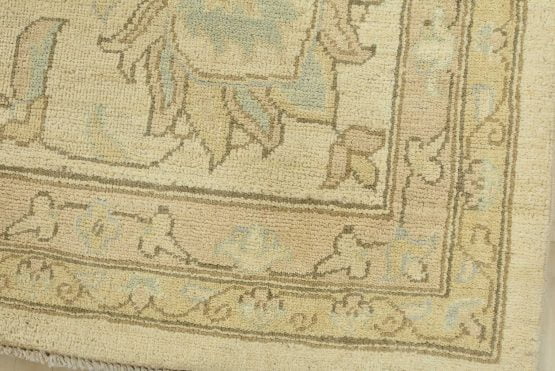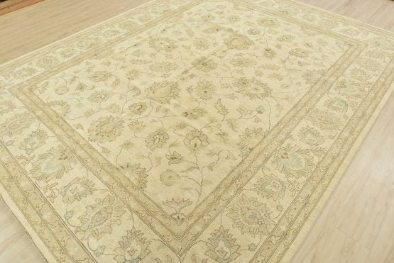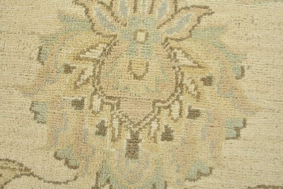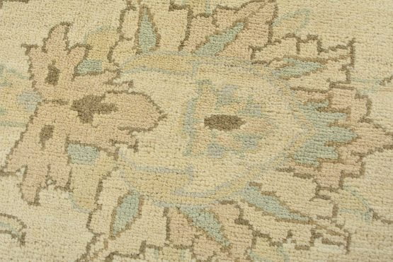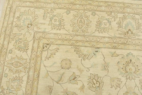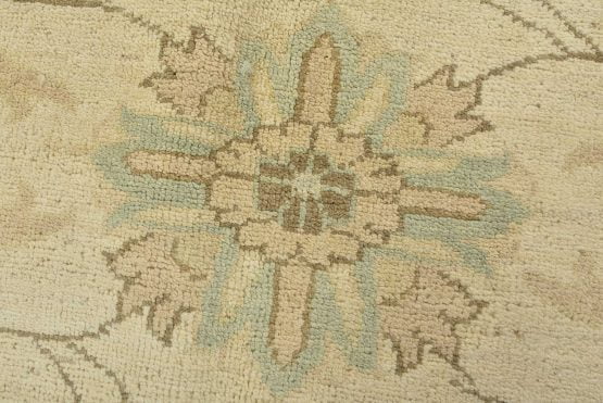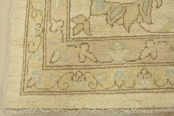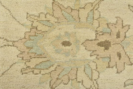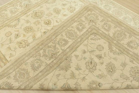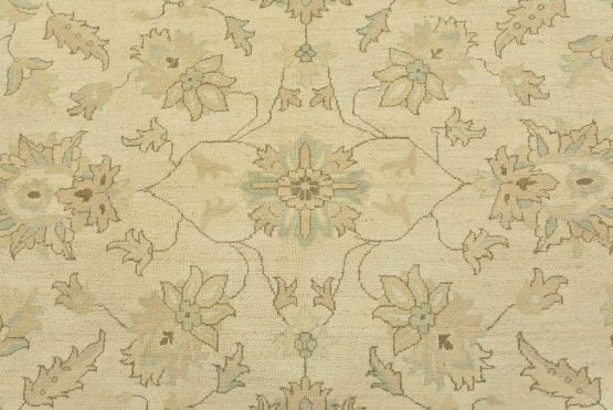 A modern traditional Ziegler rug hand-knotted with an all-wool pile on a cotton foundation. This oriental rug features a subtle all-over floral design set against a beige background. It is new and in excellent condition.
