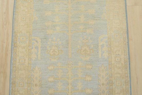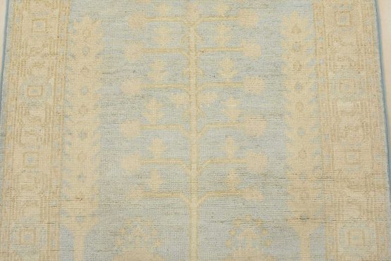 A modern traditional Ziegler rug hand-knotted with an all-wool pile on a cotton foundation. This oriental rug features a subtle botanical design set against a light blue background. It is new and in excellent condition.
