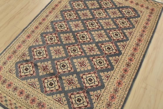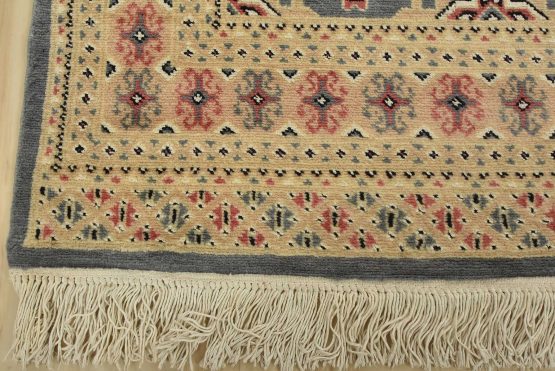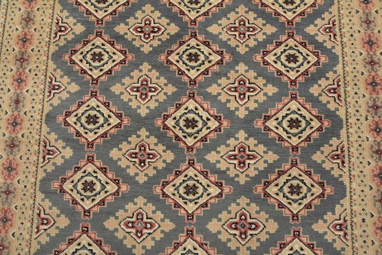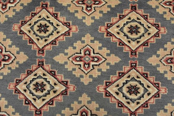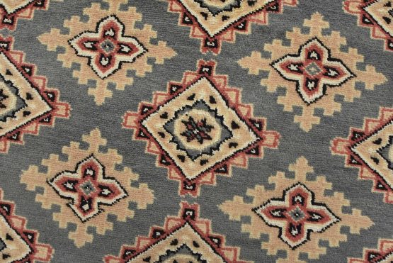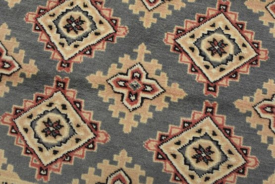 Bokhara rugs have small, repeating geometric designs woven with fine wool. The most common Bokhara design consists of rows of “Tekke” guls or medallions (the Tekkes were one of the Turkmen tribes). Bokhara rugs are made in Pakistan, Turkey, Uzbekistan, and Afghanistan.