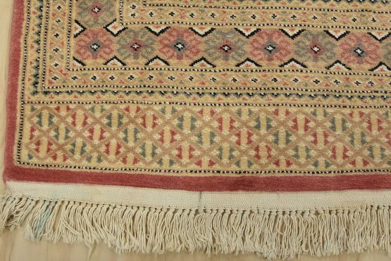 Bokhara rugs have small, repeating geometric designs woven with fine wool. The most common Bokhara design consists of rows of “Tekke” guls or medallions (the Tekkes were one of the Turkmen tribes). Bokhara rugs are made in Pakistan, Turkey, Uzbekistan, and Afghanistan.