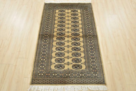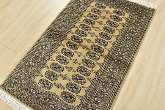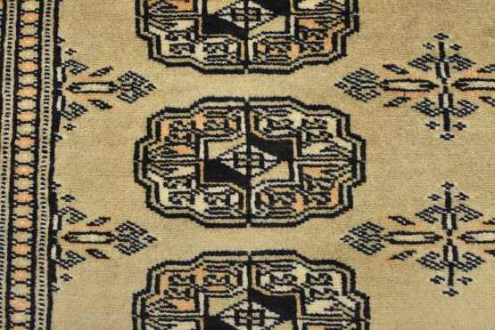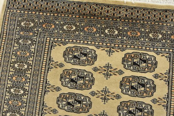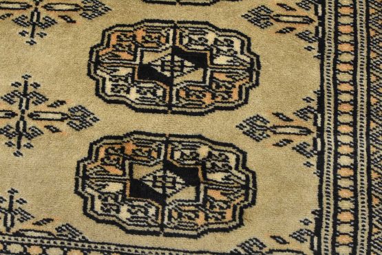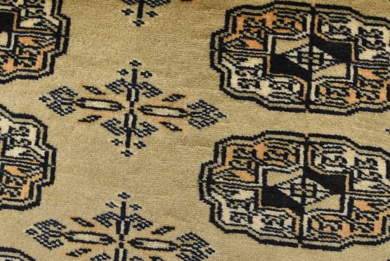 Bokhara rugs have small, repeating geometric designs woven with fine wool. The most common Bokhara design consists of rows of “Tekke” guls or medallions (the Tekkes were one of the Turkmen tribes). Bokhara rugs are made in Pakistan, Turkey, Uzbekistan, and Afghanistan.