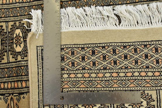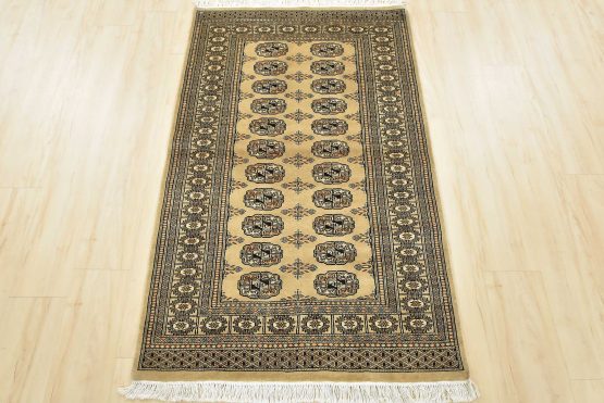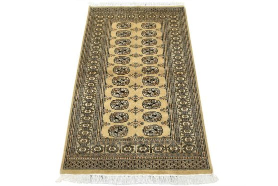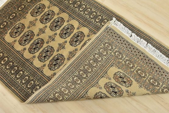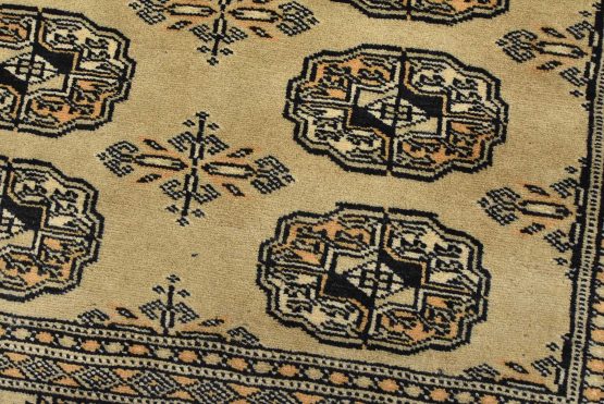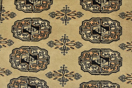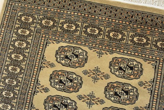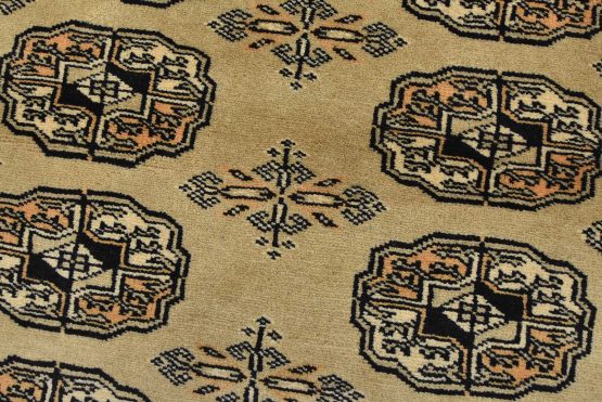 Bokhara rugs have small, repeating geometric designs woven with fine wool. The most common Bokhara design consists of rows of “Tekke” guls or medallions (the Tekkes were one of the Turkmen tribes). Bokhara rugs are made in Pakistan, Turkey, Uzbekistan, and Afghanistan.