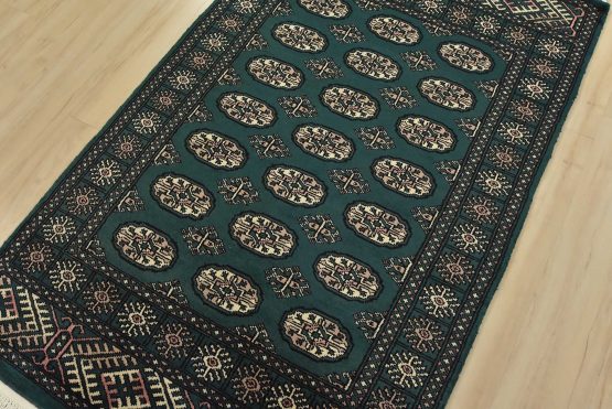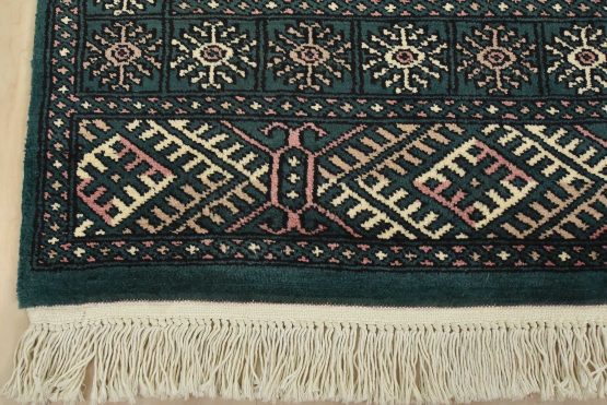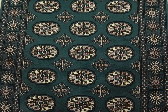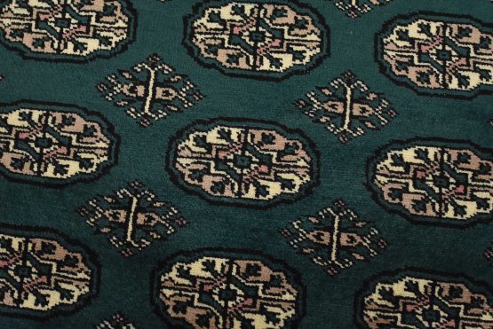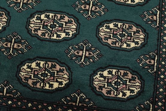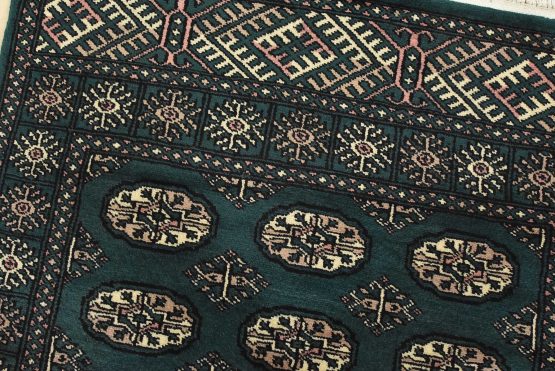 Bokhara rugs have small, repeating geometric designs woven with fine wool. The most common Bokhara design consists of rows of “Tekke” guls or medallions (the Tekkes were one of the Turkmen tribes). Bokhara rugs are made in Pakistan, Turkey, Uzbekistan, and Afghanistan.