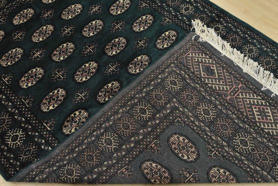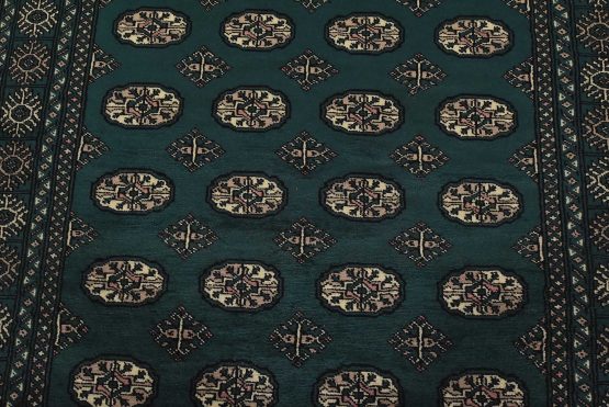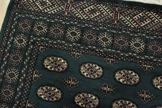 Bokhara rugs have small, repeating geometric designs woven with fine wool. The most common Bokhara design consists of rows of “Tekke” guls or medallions (the Tekkes were one of the Turkmen tribes). Bokhara rugs are made in Pakistan, Turkey, Uzbekistan, and Afghanistan.