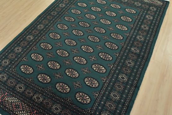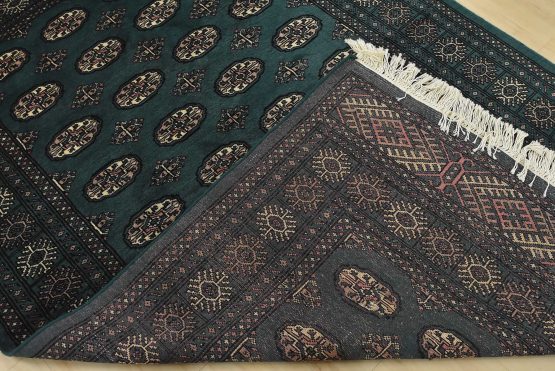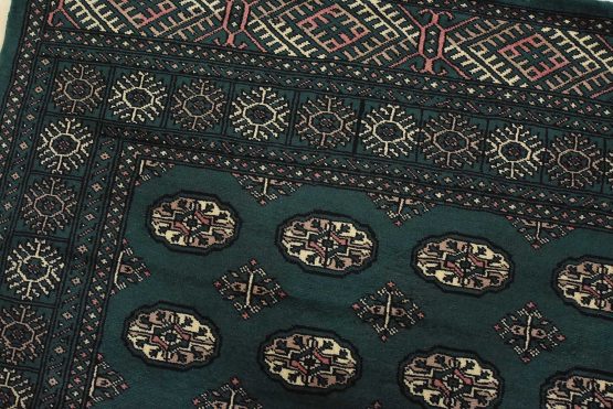 Bokhara rugs have small, repeating geometric designs woven with fine wool. The most common Bokhara design consists of rows of “Tekke” guls or medallions (the Tekkes were one of the Turkmen tribes). Bokhara rugs are made in Pakistan, Turkey, Uzbekistan, and Afghanistan.