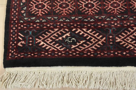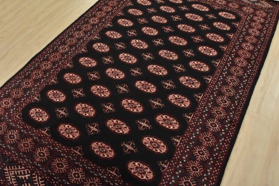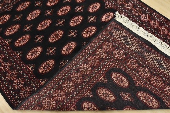 Bokhara rugs have small, repeating geometric designs woven with fine wool. The most common Bokhara design consists of rows of “Tekke” guls or medallions (the Tekkes were one of the Turkmen tribes). Bokhara rugs are made in Pakistan, Turkey, Uzbekistan, and Afghanistan.