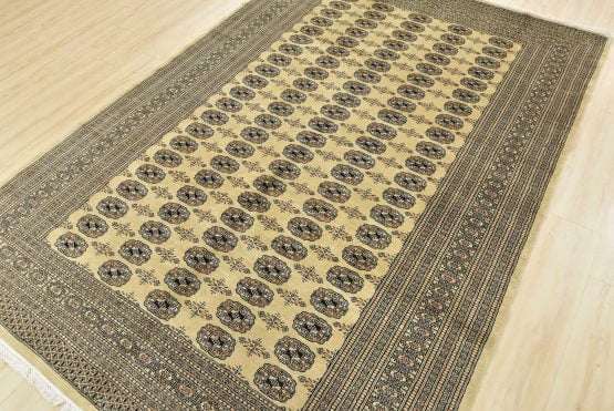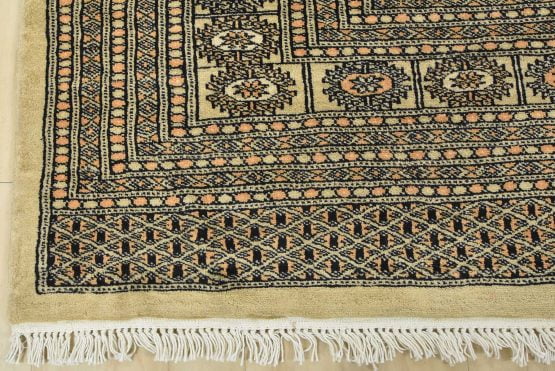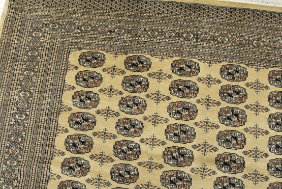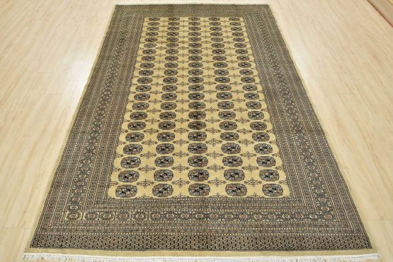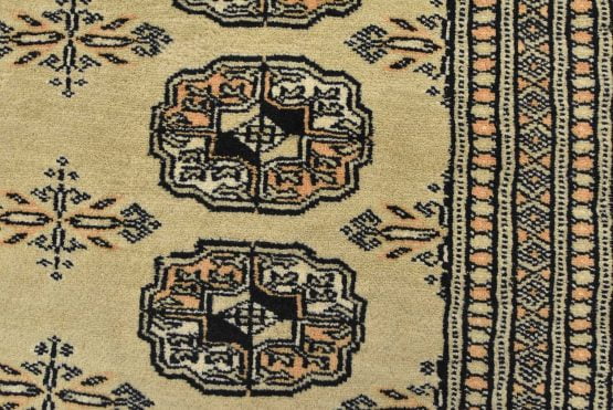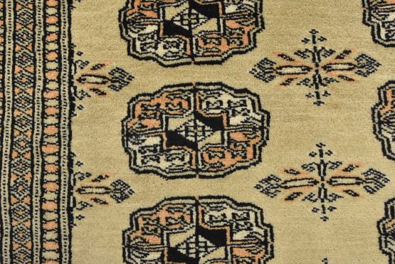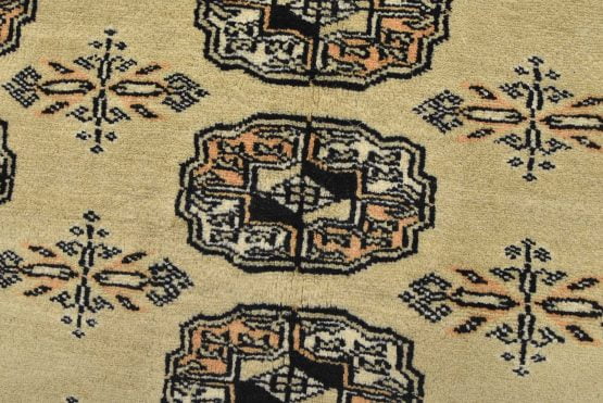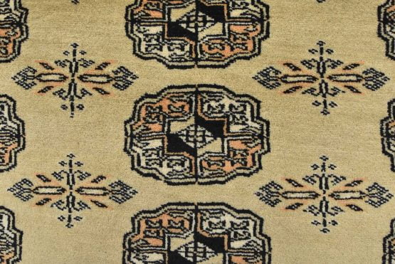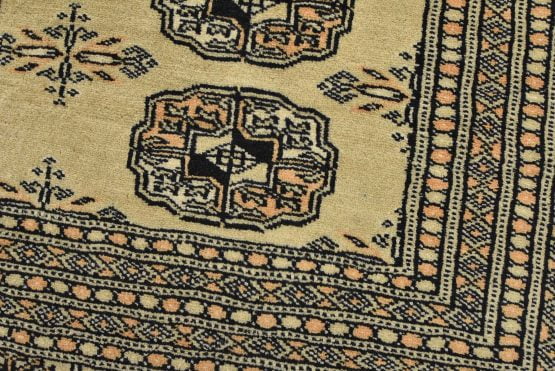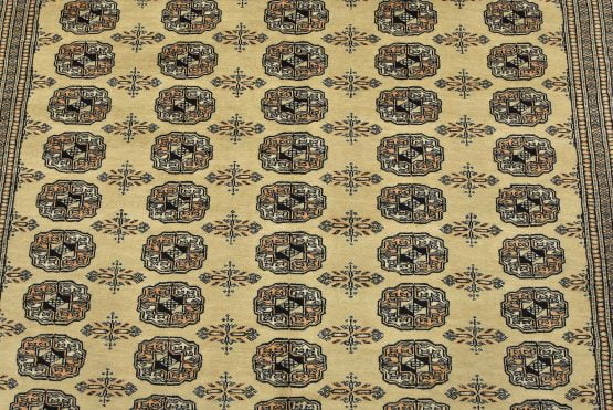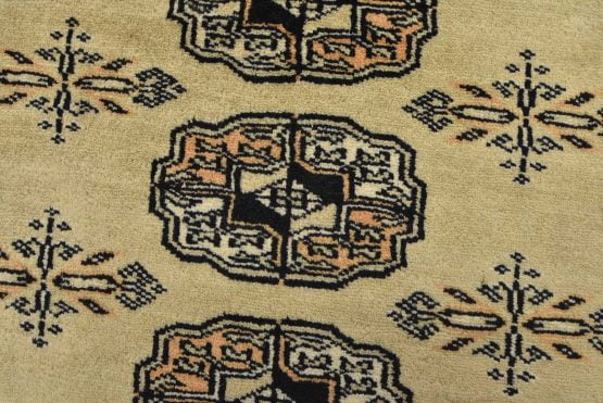 Bokhara rugs have small, repeating geometric designs woven with fine wool. The most common Bokhara design consists of rows of “Tekke” guls or medallions (the Tekkes were one of the Turkmen tribes). Bokhara rugs are made in Pakistan, Turkey, Uzbekistan, and Afghanistan.