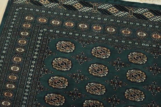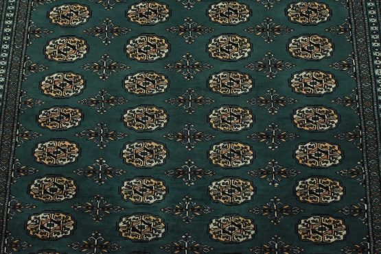 Bokhara rugs have small, repeating geometric designs woven with fine wool. The most common Bokhara design consists of rows of “Tekke” guls or medallions (the Tekkes were one of the Turkmen tribes). Bokhara rugs are made in Pakistan, Turkey, Uzbekistan, and Afghanistan.