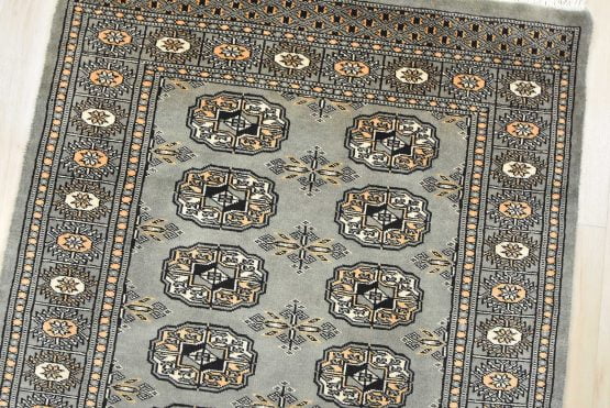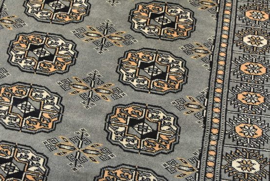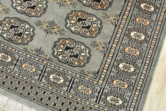 Bokhara rugs have small, repeating geometric designs woven with fine wool. The most common Bokhara design consists of rows of “Tekke” guls or medallions (the Tekkes were one of the Turkmen tribes). Bokhara rugs are made in Pakistan, Turkey, Uzbekistan, and Afghanistan.