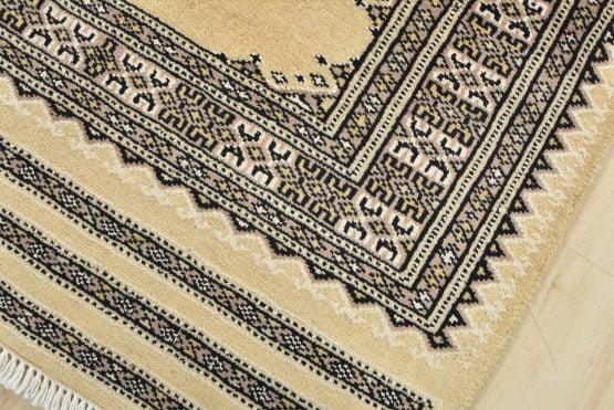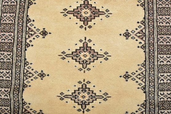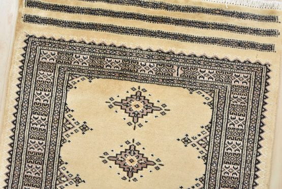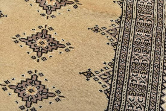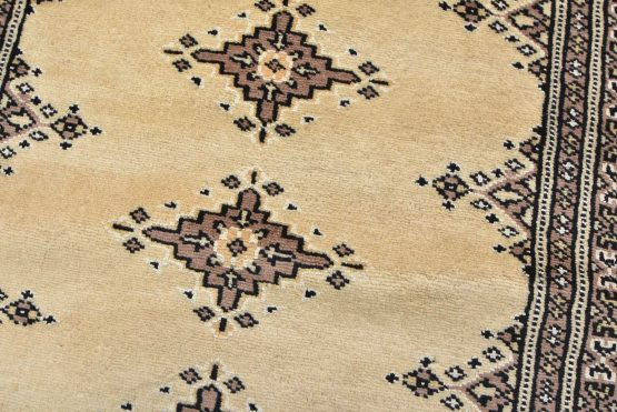 Bokhara rugs have small, repeating geometric designs woven with fine wool. The most common Bokhara design consists of rows of “Tekke” guls or medallions (the Tekkes were one of the Turkmen tribes). Bokhara rugs are made in Pakistan, Turkey, Uzbekistan, and Afghanistan.