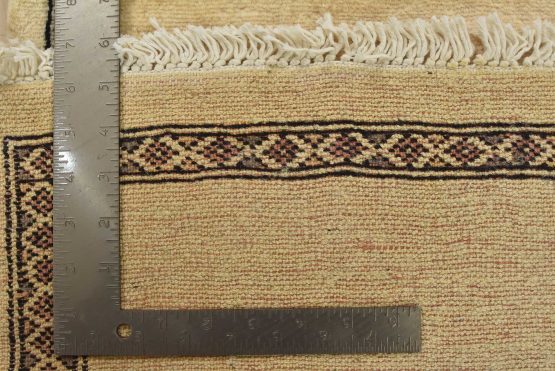 Bokhara rugs have small, repeating geometric designs woven with fine wool. The most common Bokhara design consists of rows of “Tekke” guls or medallions (the Tekkes were one of the Turkmen tribes). Bokhara rugs are made in Pakistan, Turkey, Uzbekistan, and Afghanistan.