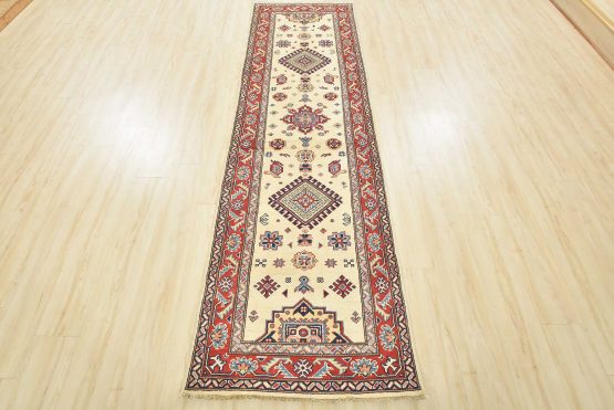 Kazak Runner 2’10” x 9’9” Beige Wool Tribal Hand-Knotted Oriental Rug