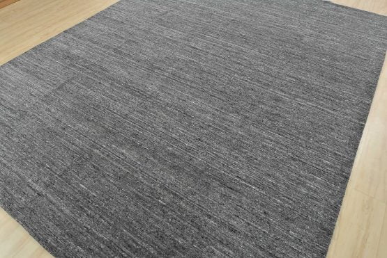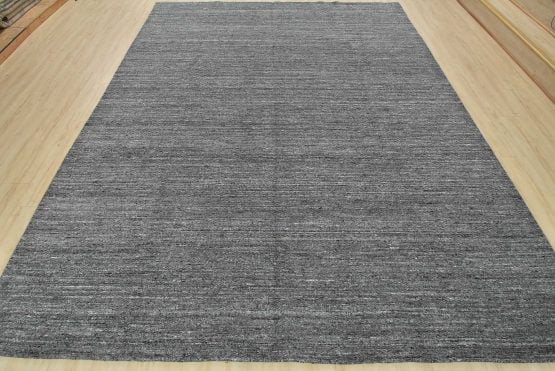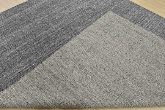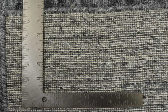 A contemporary cut-and-loop rug hand-knotted with an all-wool pile on a cotton foundation. This finely woven area rug features a gradient gray background. It is new and in excellent condition.