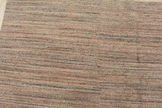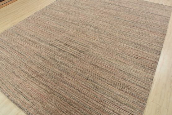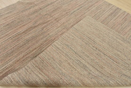 A contemporary rug hand-knotted with an all-wool cut and looped pile on a cotton foundation. This area rug features a gradient pink background. It is new and in excellent condition.