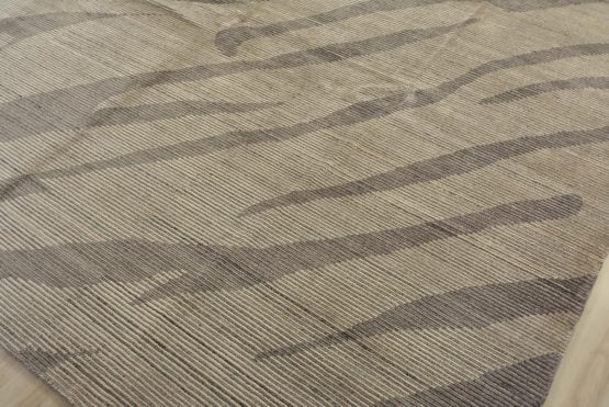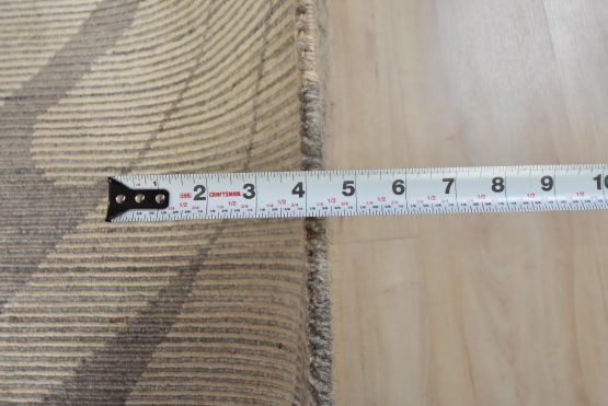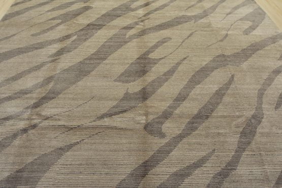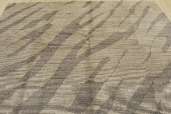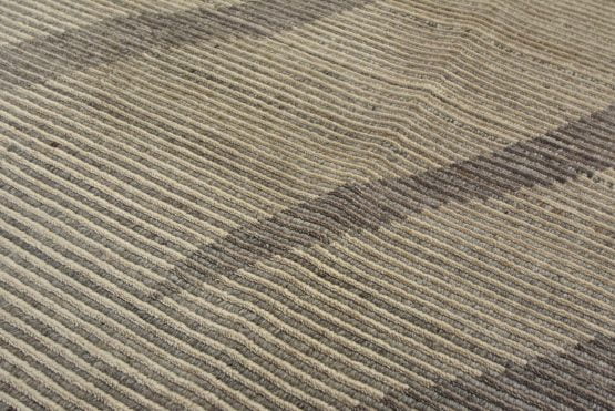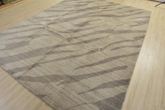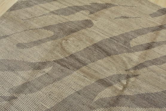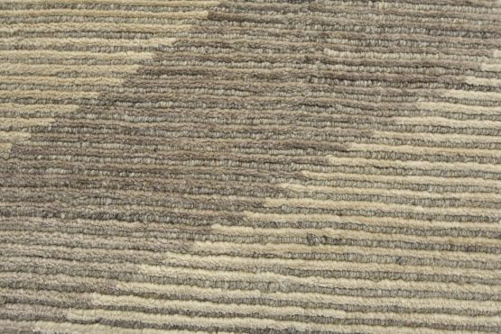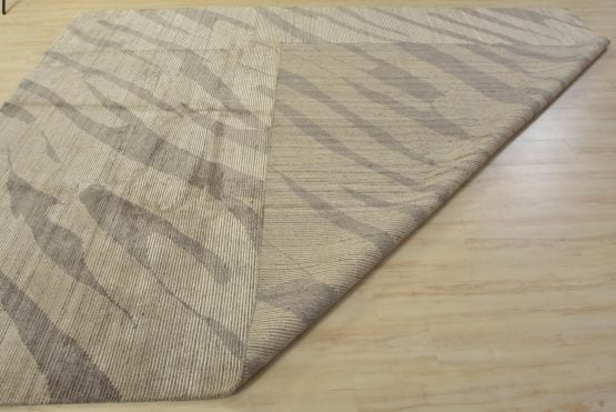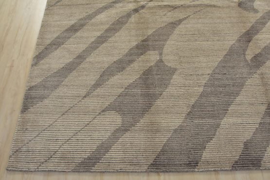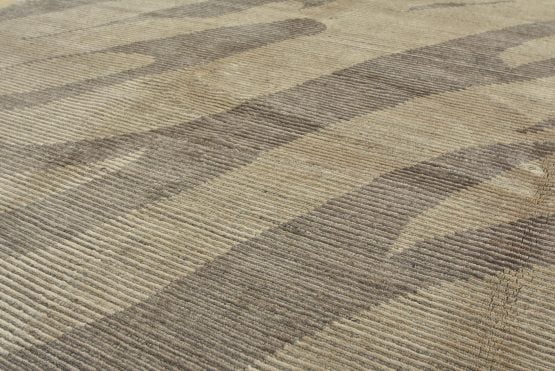 A contemporary rug hand-knotted with an all-wool cut and looped pile on a cotton foundation. This area rug features an abstract design in shades of beige and gray. It is new and in excellent condition.