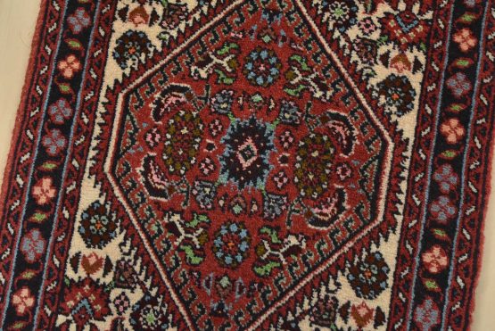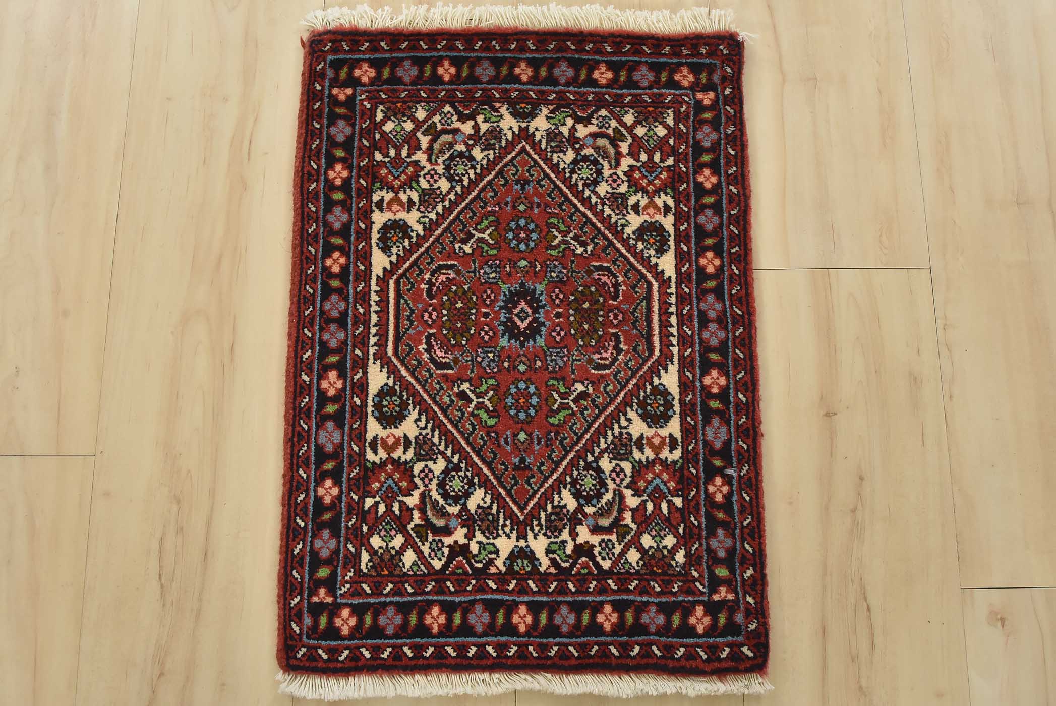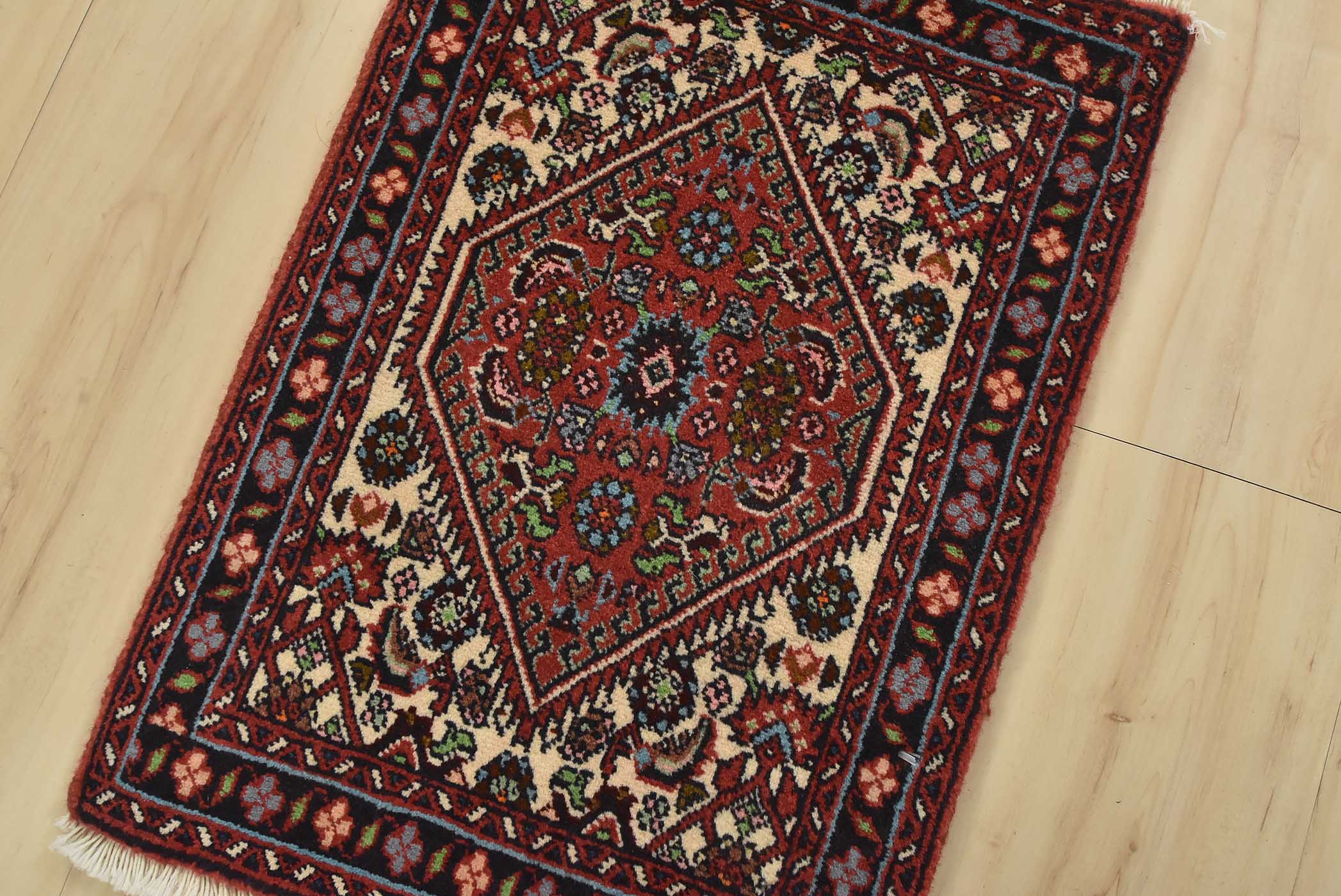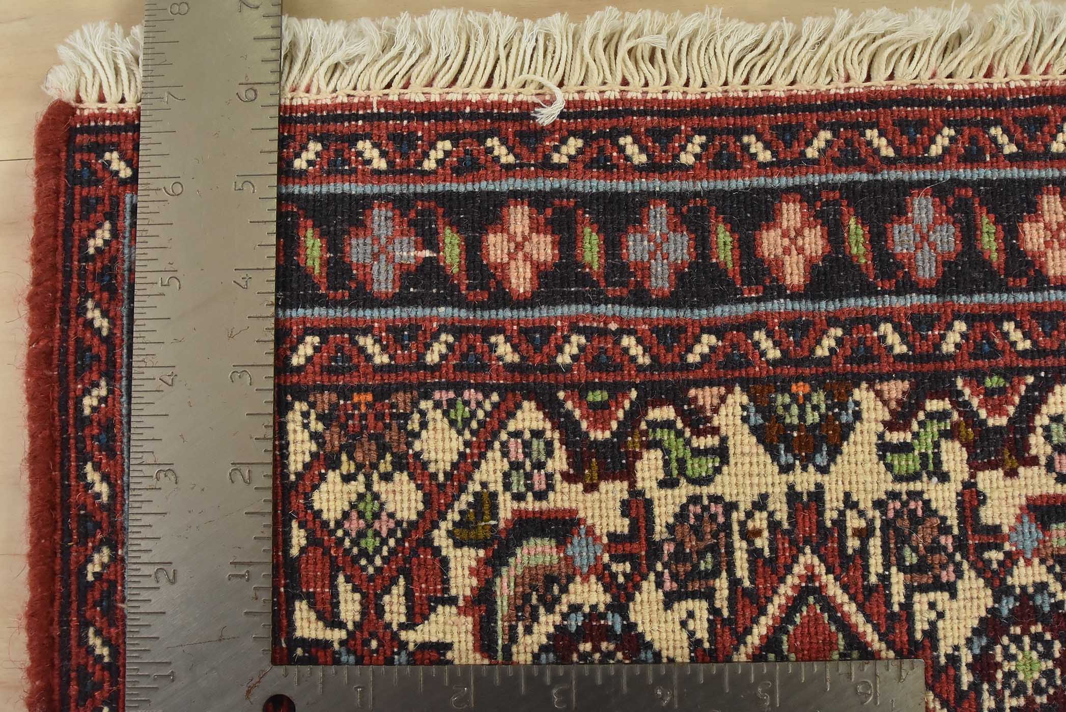 An authentic vintage traditional Bidjar rug hand-knotted with fine wool and natural dyes. This intricately woven oriental rug features a central medallion with a Herati pattern set against an ivory background. It has a full wool pile with no worn areas and is in very good condition.