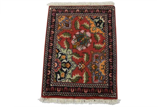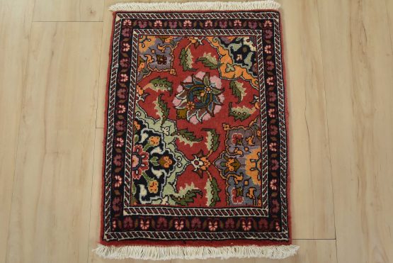 An authentic vintage traditional Bidjar rug hand-knotted with fine wool and natural dyes. This intricately woven oriental rug features floral motifs set against a red background. It has a full wool pile with no worn areas and is in very good condition.
