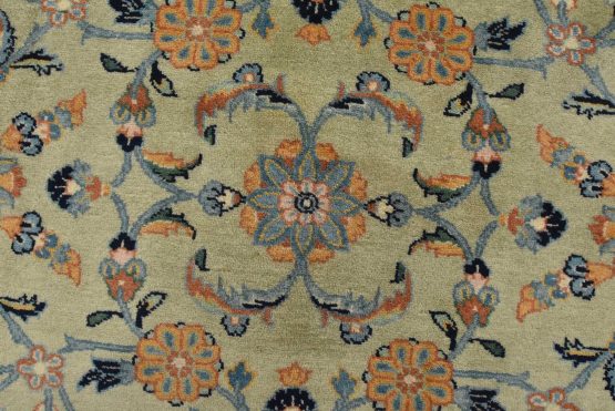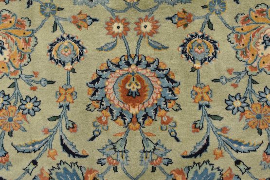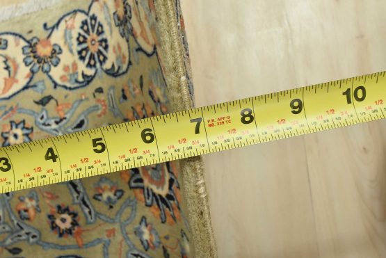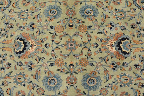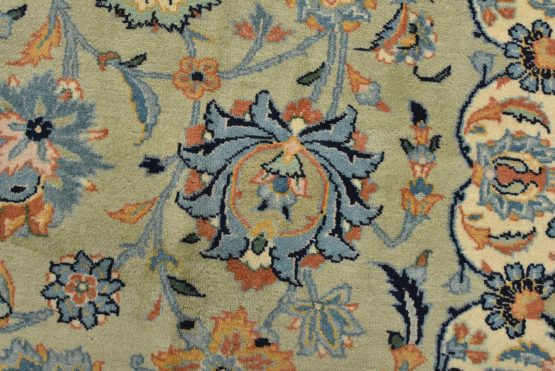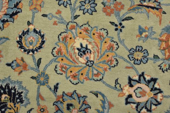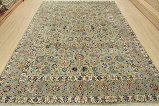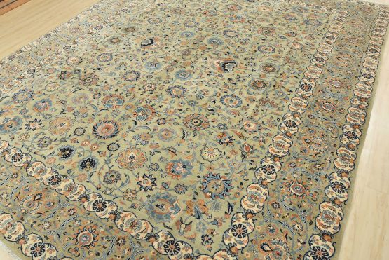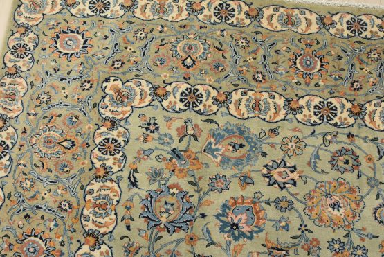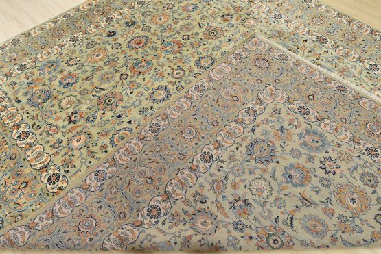 An authentic vintage traditional Kashan rug hand-knotted with fine wool and natural dyes. This finely woven oriental rug features an all-over floral design set against a light blue background. It is in excellent shape for an older rug. It has a full wool pile with no worn areas and is in very good condition.