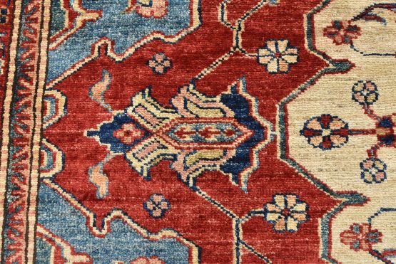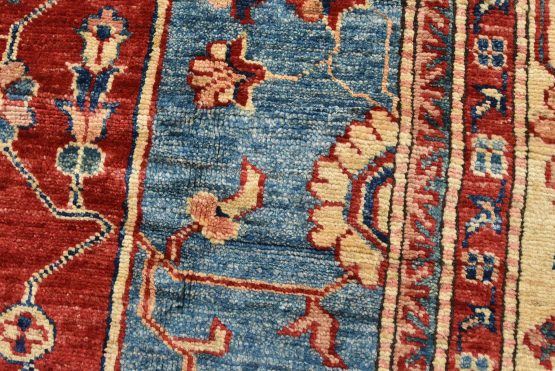 Original antique Kazak rugs from the Caucasus region inspire the creation of new Kazak rugs. These rugs are woven with fine wool using traditional Kazak patterns and finished with a low-cut pile to give them an authentic vintage look.