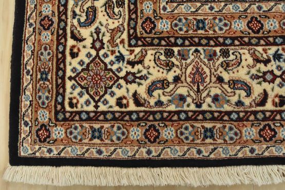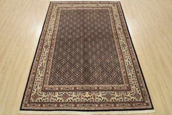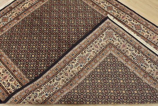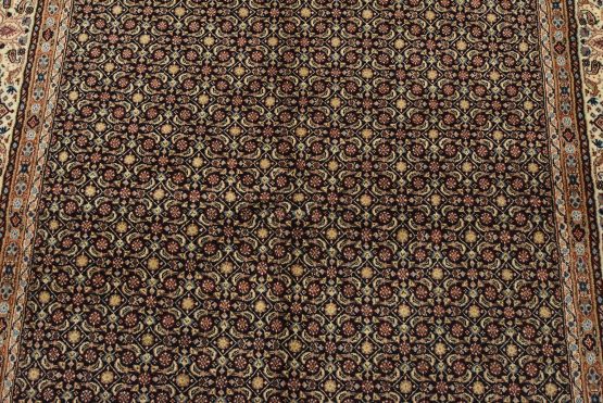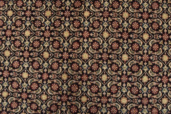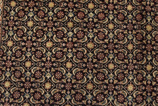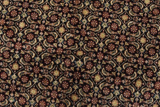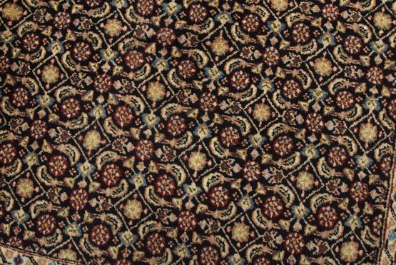 An authentic vintage traditional Mood rug, hand-knotted with fine wool and silk highlights, using natural dyes. This intricately woven oriental rug features a Herati pattern set against a blue background. It has a full wool pile with no worn areas and is in very good condition.