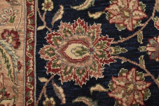 A traditional Tabriz rug hand-knotted with an all-wool pile on a cotton foundation. This finely woven oriental rug features an all-over floral design set against a blue background. It is new and in excellent condition.