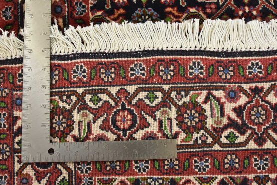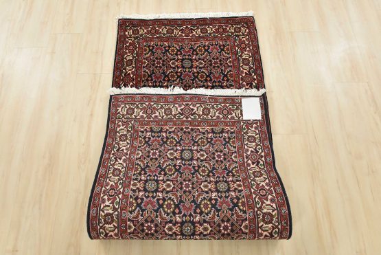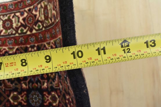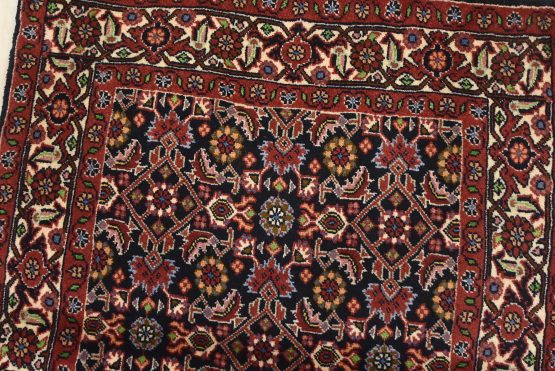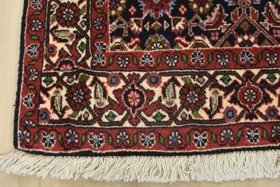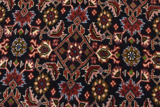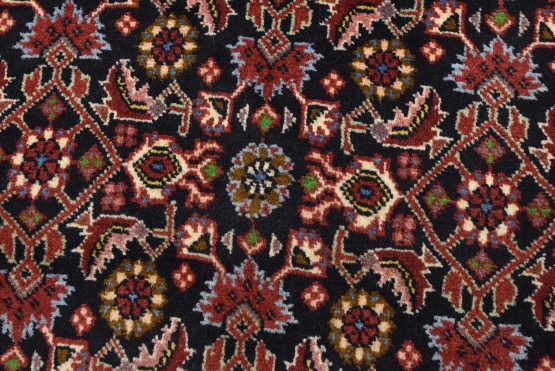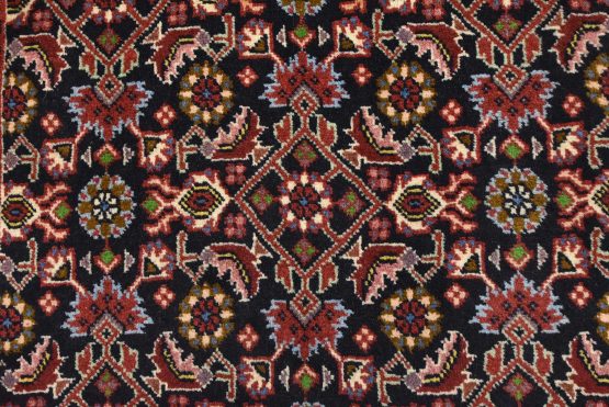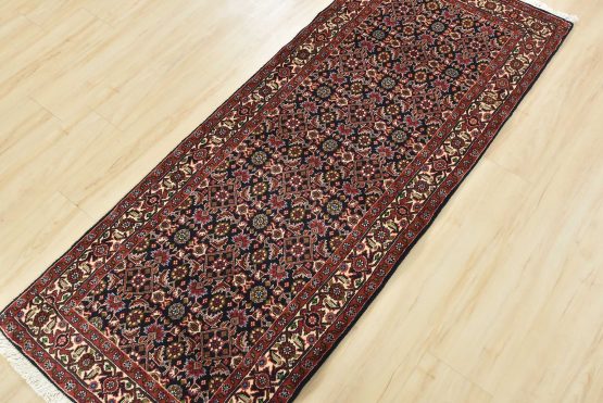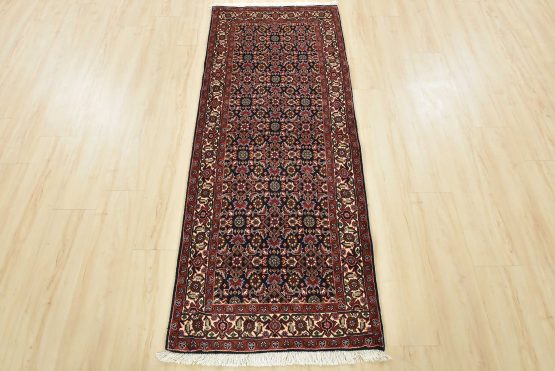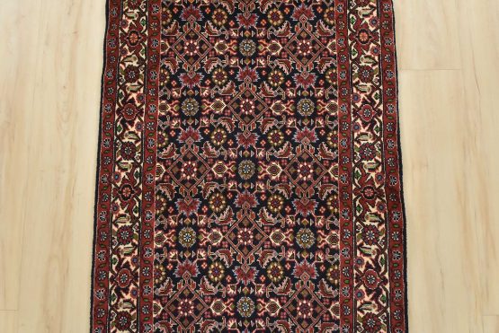 An authentic vintage traditional Bidjar runner hand-knotted with fine wool and natural dyes. This finely woven oriental rug features an all-over Herati pattern set against a dark blue background. It has a full wool pile with no worn areas and is in very good condition.