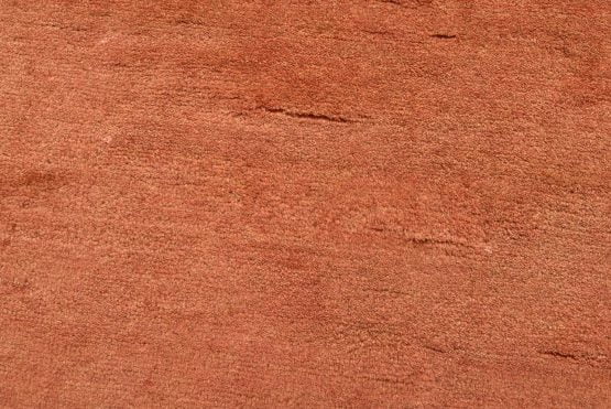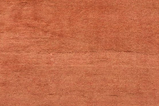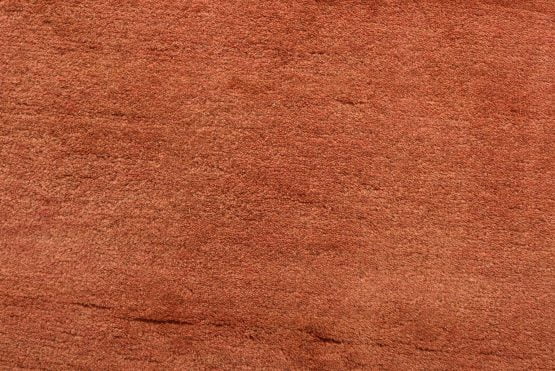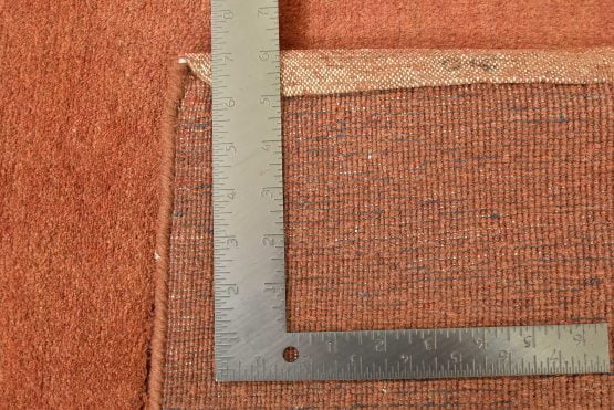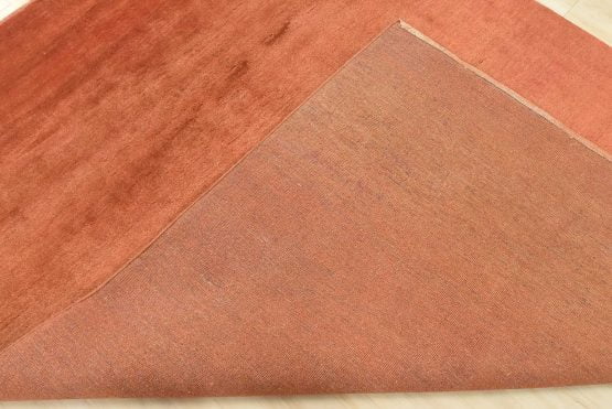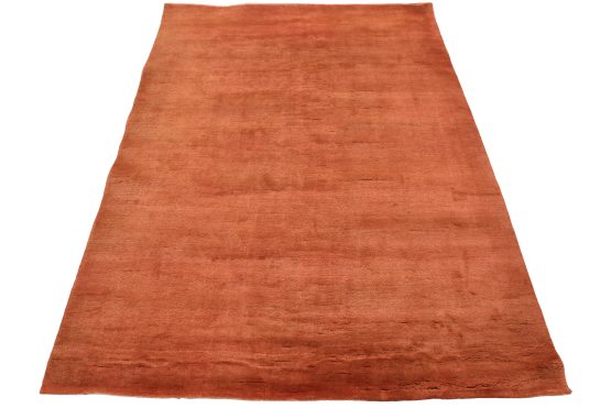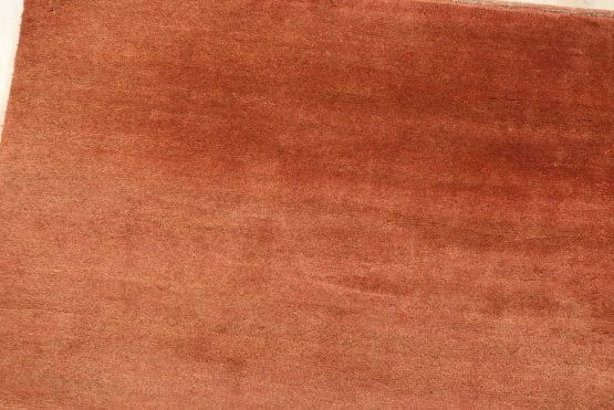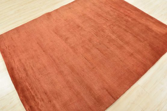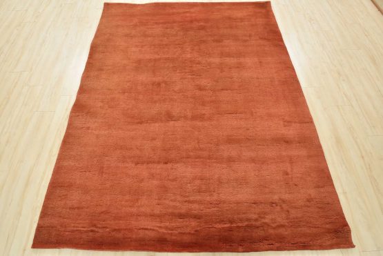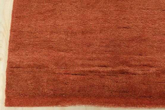 A contemporary Gabbeh rug hand-knotted with an all-wool pile on a cotton foundation. This finely woven area rug features a solid rust-colored background. It is new and in excellent condition.