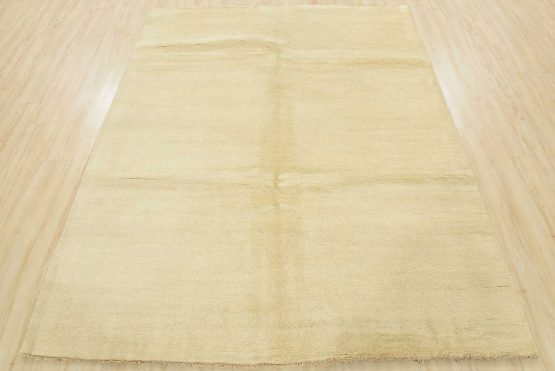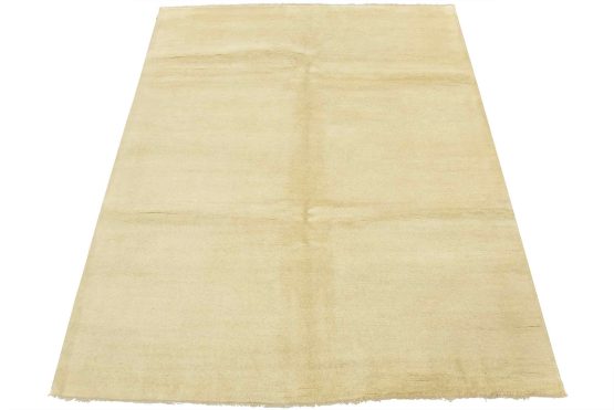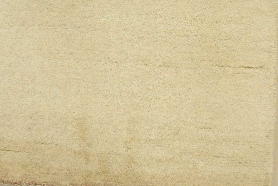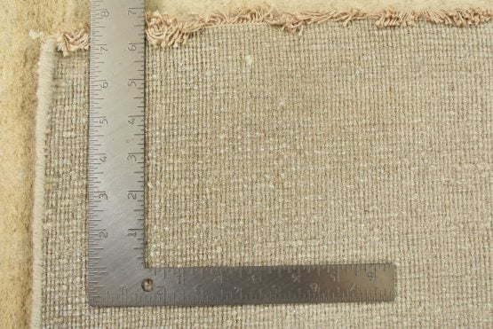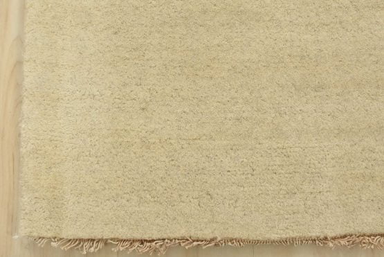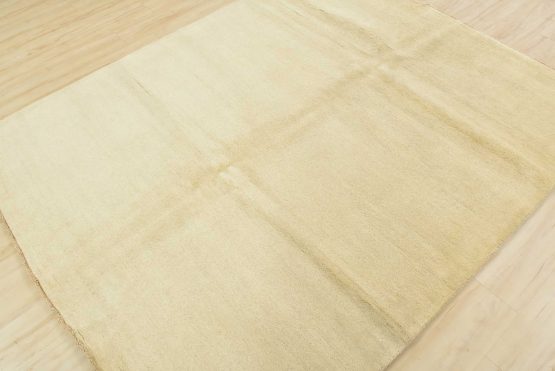 A contemporary solid ivory area rug hand-knotted with an all-wool pile on a cotton foundation. This finely woven rug is new and in excellent condition.